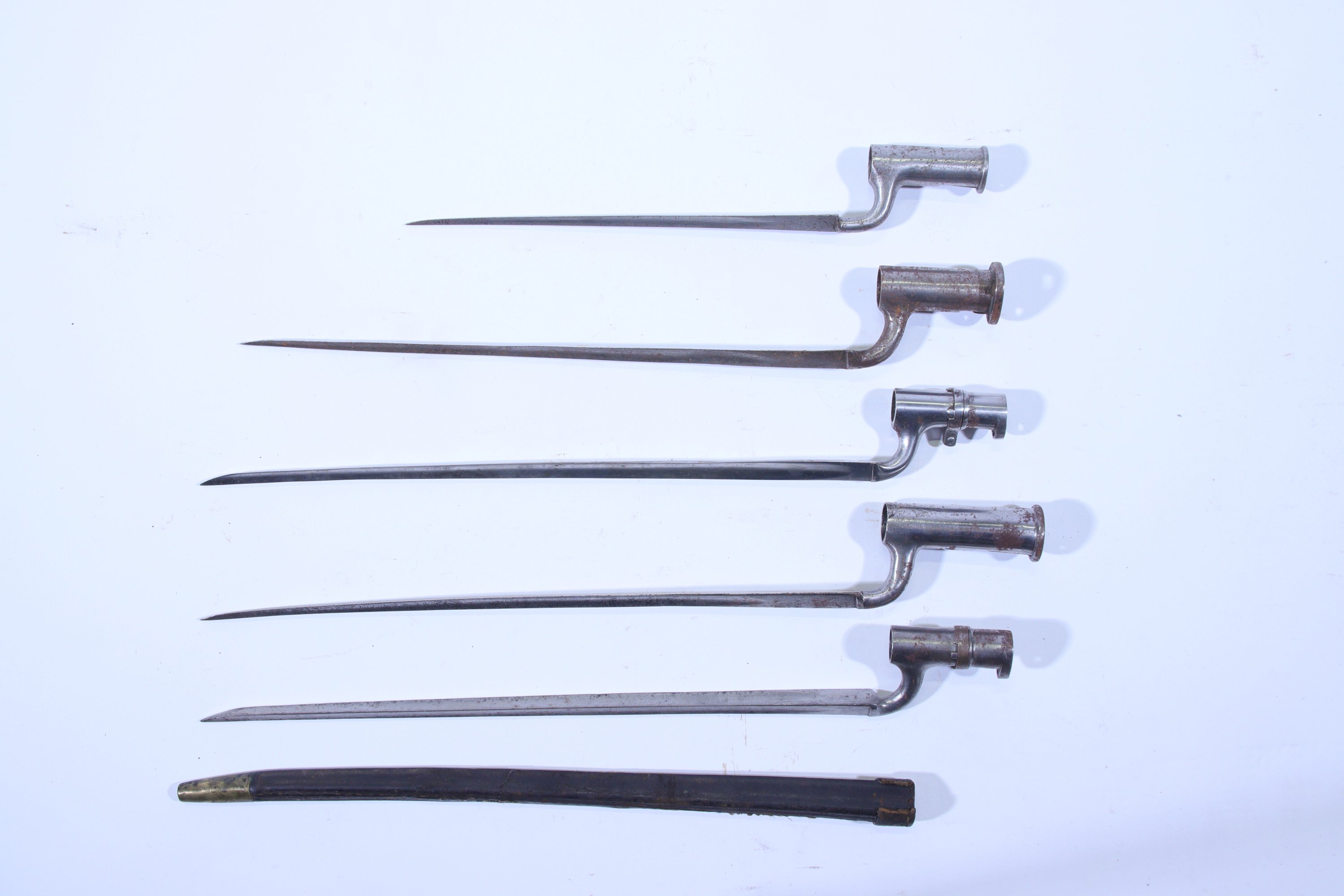 Une avec fourreau en cuir, trois à douille sans virole et deux à virole médiane.