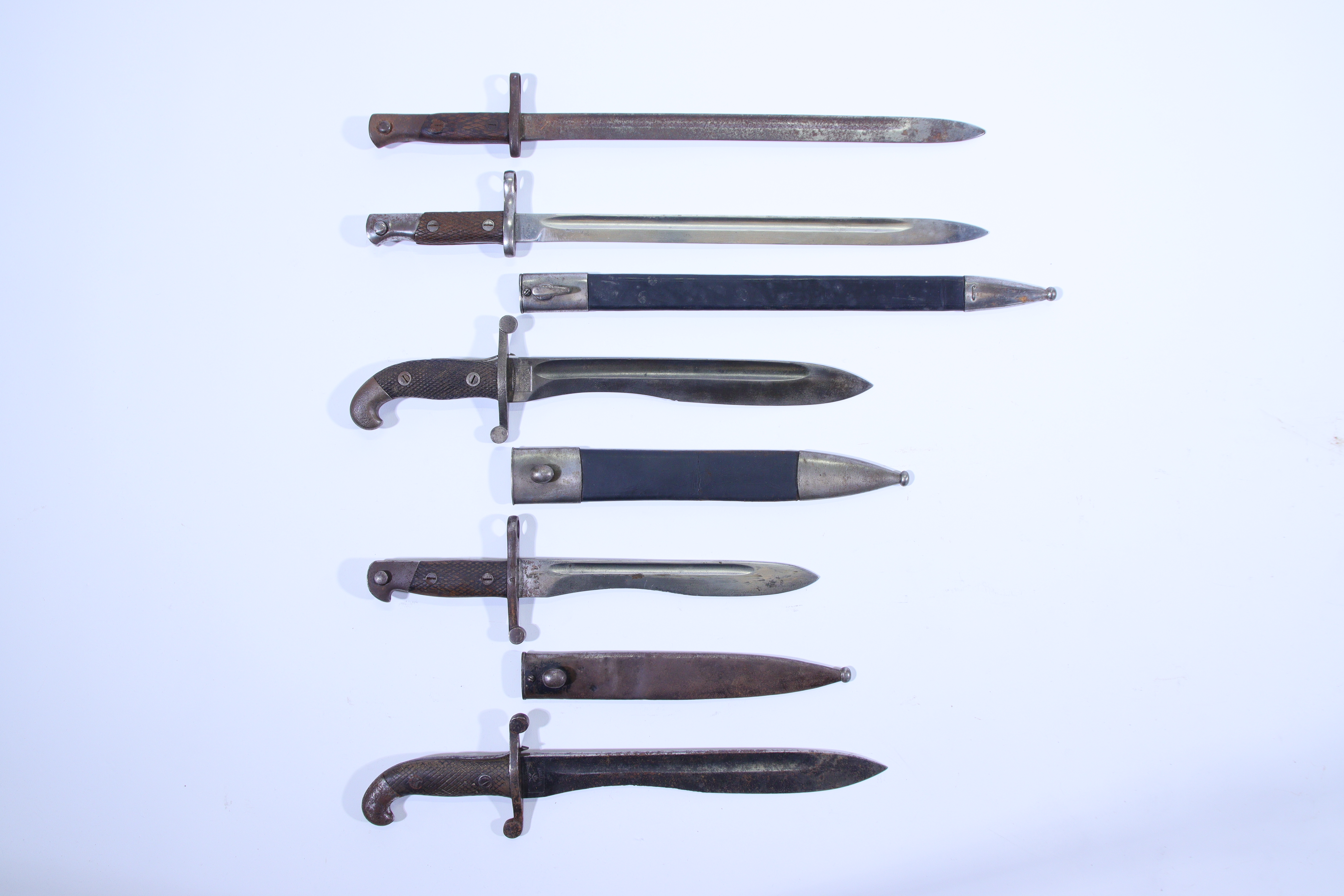 Ensemble de cinq baïonnettes et couteaux espagnols dont modèle 1893, modèle 1941
