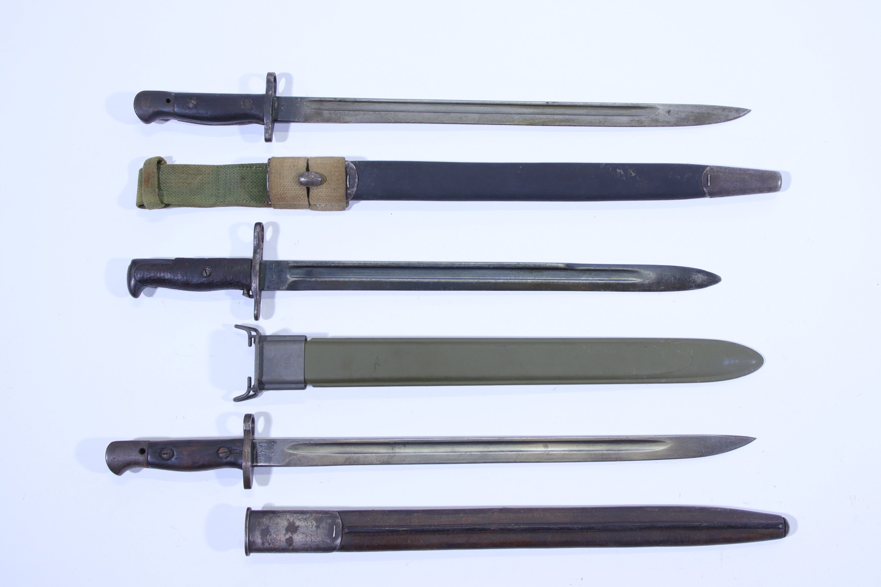 Ensemble de trois baïonnettes, dont deux britanniques modèle 1907 et une US modèle 1906