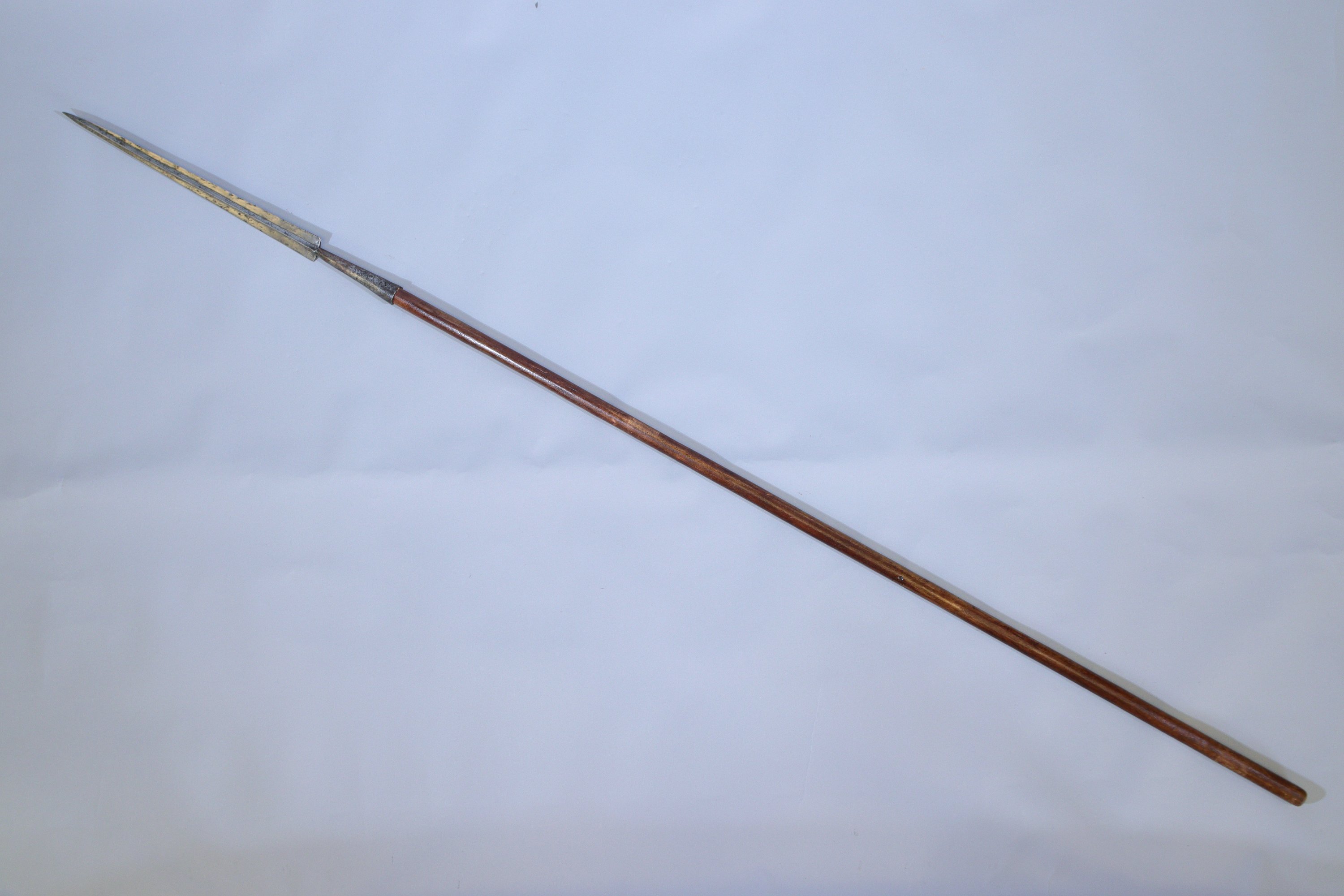 Long fer à arête médiane gravé « AN » sur une face, plat. Sur douille ronde.