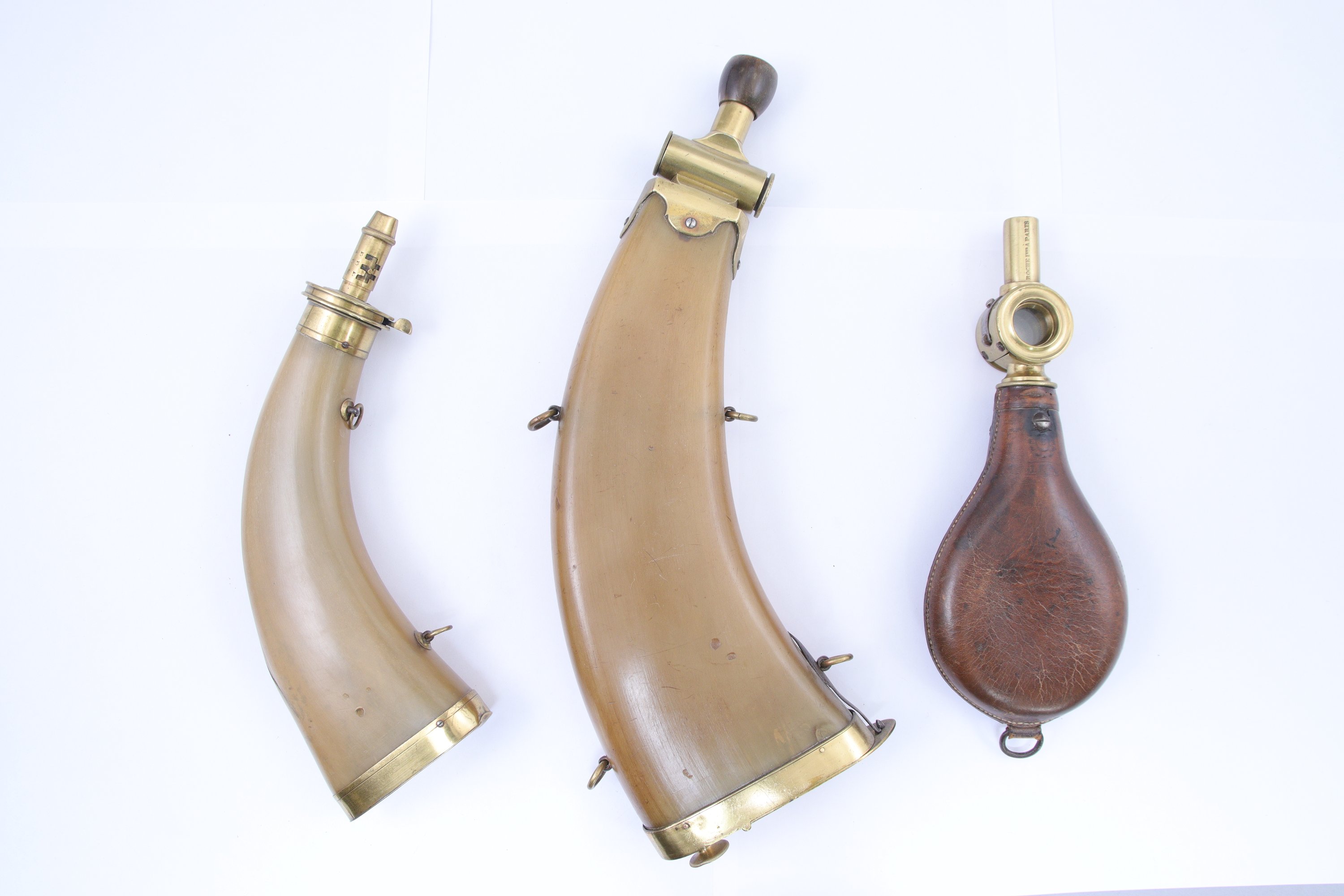- en corne, à 4 anneaux de suspente. Bec doseur à lunette et garnitures en laiton.