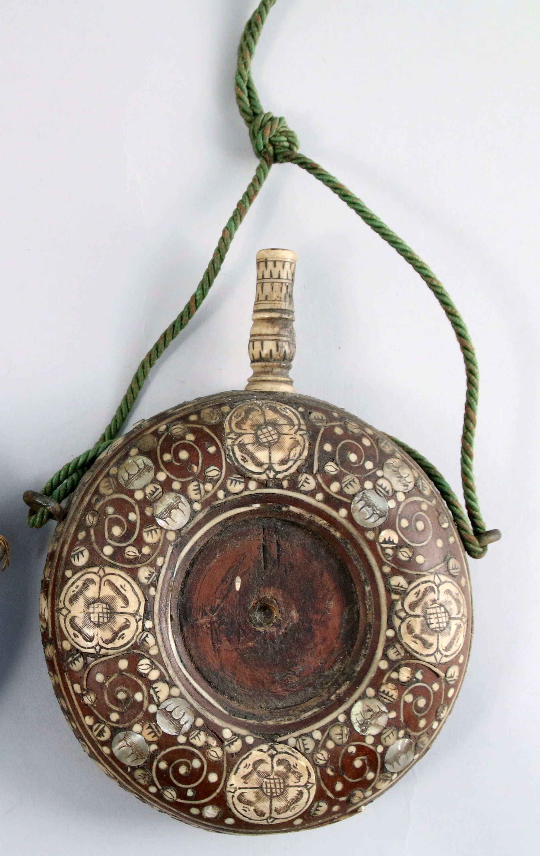 de forme circulaire, à décor d'incrustations d'os gravé et de nacre à motifs quadrifeuilles et rinceaux.