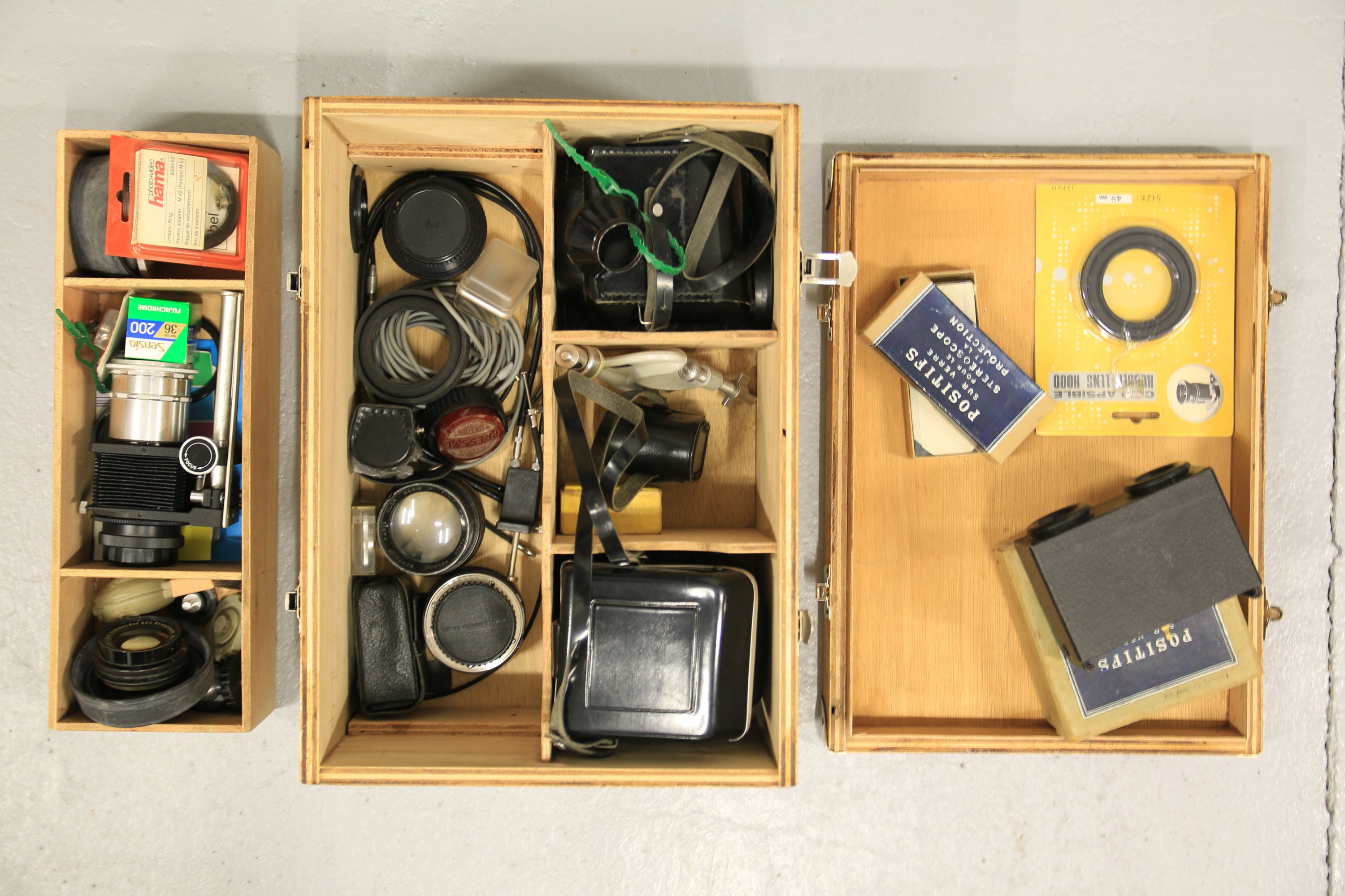 - Différents matériels comprenant notamment différents objectifs, instruments d'optiques, films négatifs, étau, trépieds, flashs, visionneuses etc.