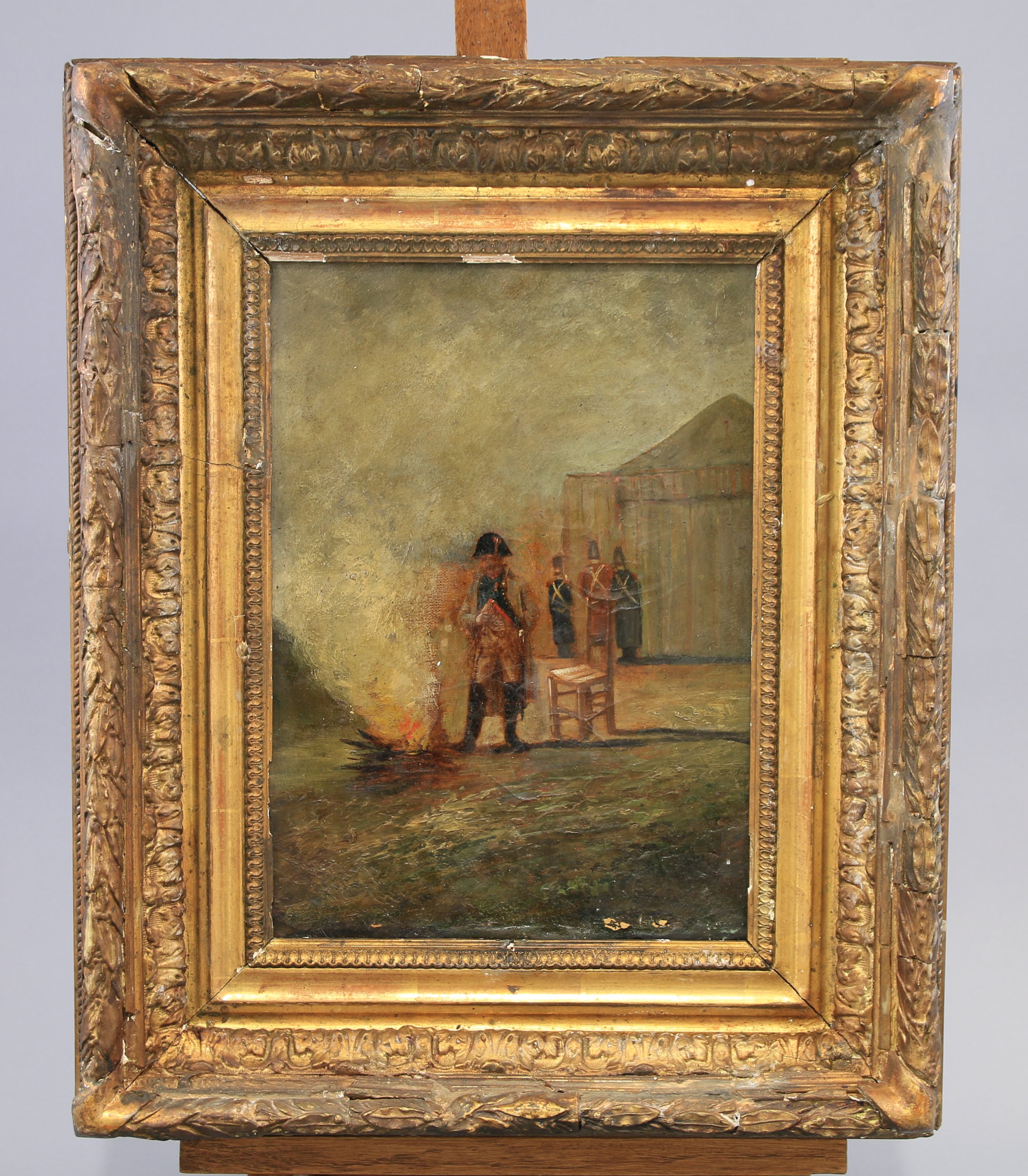 Conçu comme un pendant de "Guerre. L'Exilé et l'Arapède" de 1842 (titre original : War. The Exile and the Rock Limpet) conservé à la Tate Britain, cette toile figure Napoléon Ier dans son uniforme de colonel de la garde, arborant la Légion d'Honneur, engoncé dans son manteau de campagne, debout face à un feu qu'il semble avoir veillé toute la nuit assis sur une chaise, alors que le jour se lève derrière une tente gardée par trois sentinelles représentées de dos. Cette mise en abîme au matin de la bataille de Waterloo rappelle tragiquement les feux et le soleil d'Austerlitz et annonce la chute de l'aigle qui régna sur l'Europe.