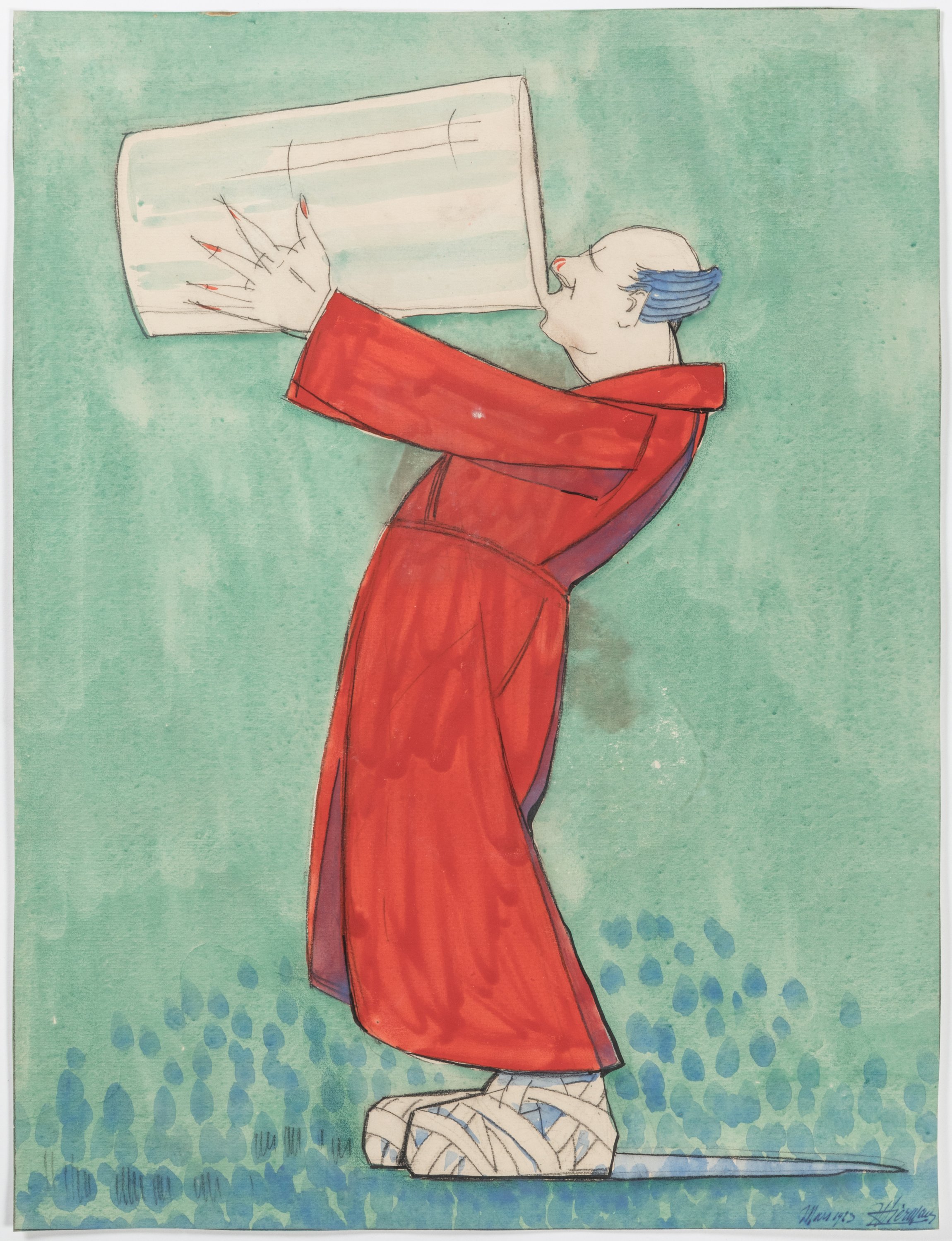 - Le buveur, 1923. Crayon et aquarelle sur papier. Signé en bas à droite et daté "mars 1923". Haut. 65,5 Larg. 48,5 cm (tache). Sans cadre ;