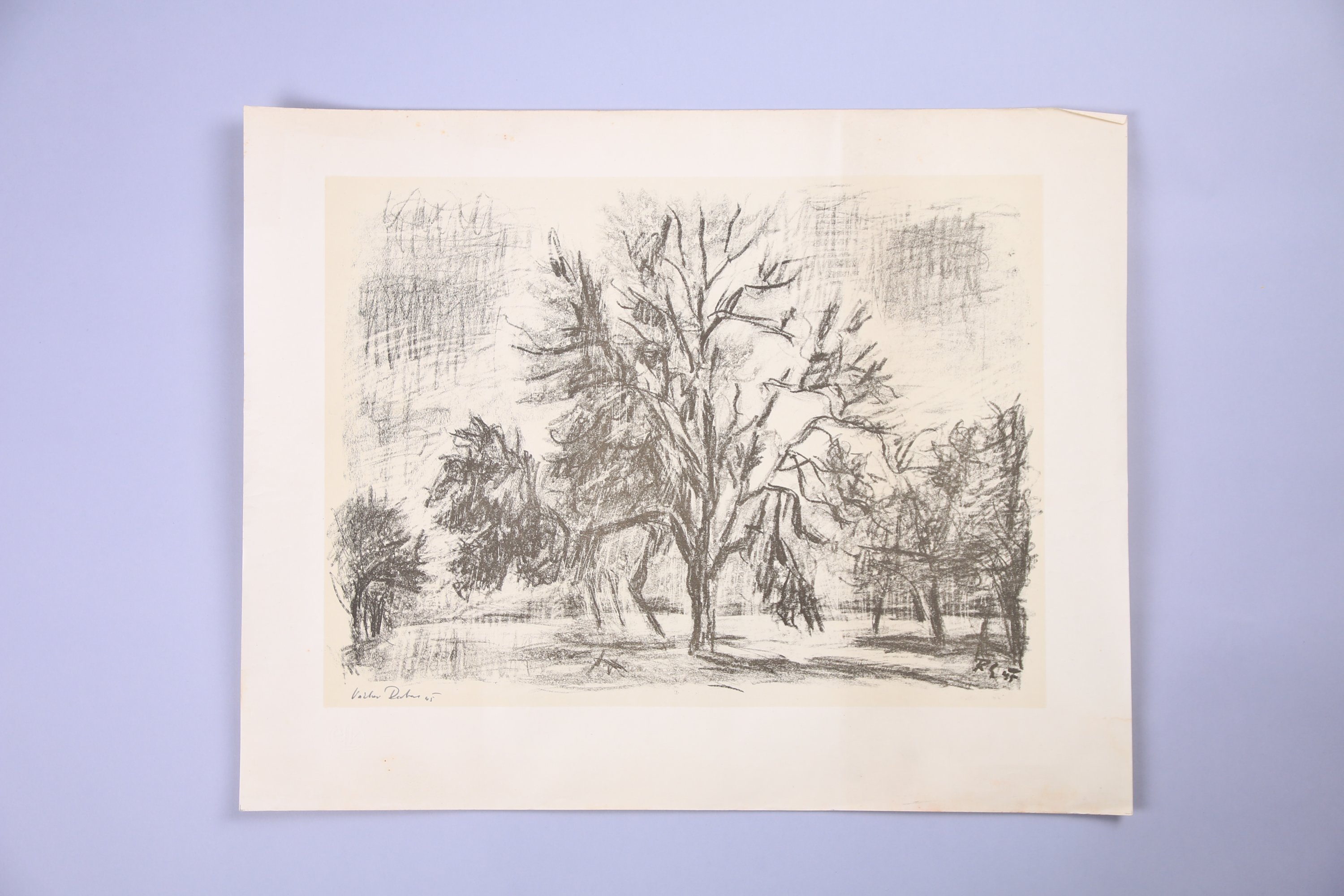 - Vaclav Sivko (Tchèque, 1923-1974) Arbres, Estampe signée au crayon, L'image : Haut. 32 Larg. 43 cm. La feuille : Haut. 42 Larg. 53 cm ;