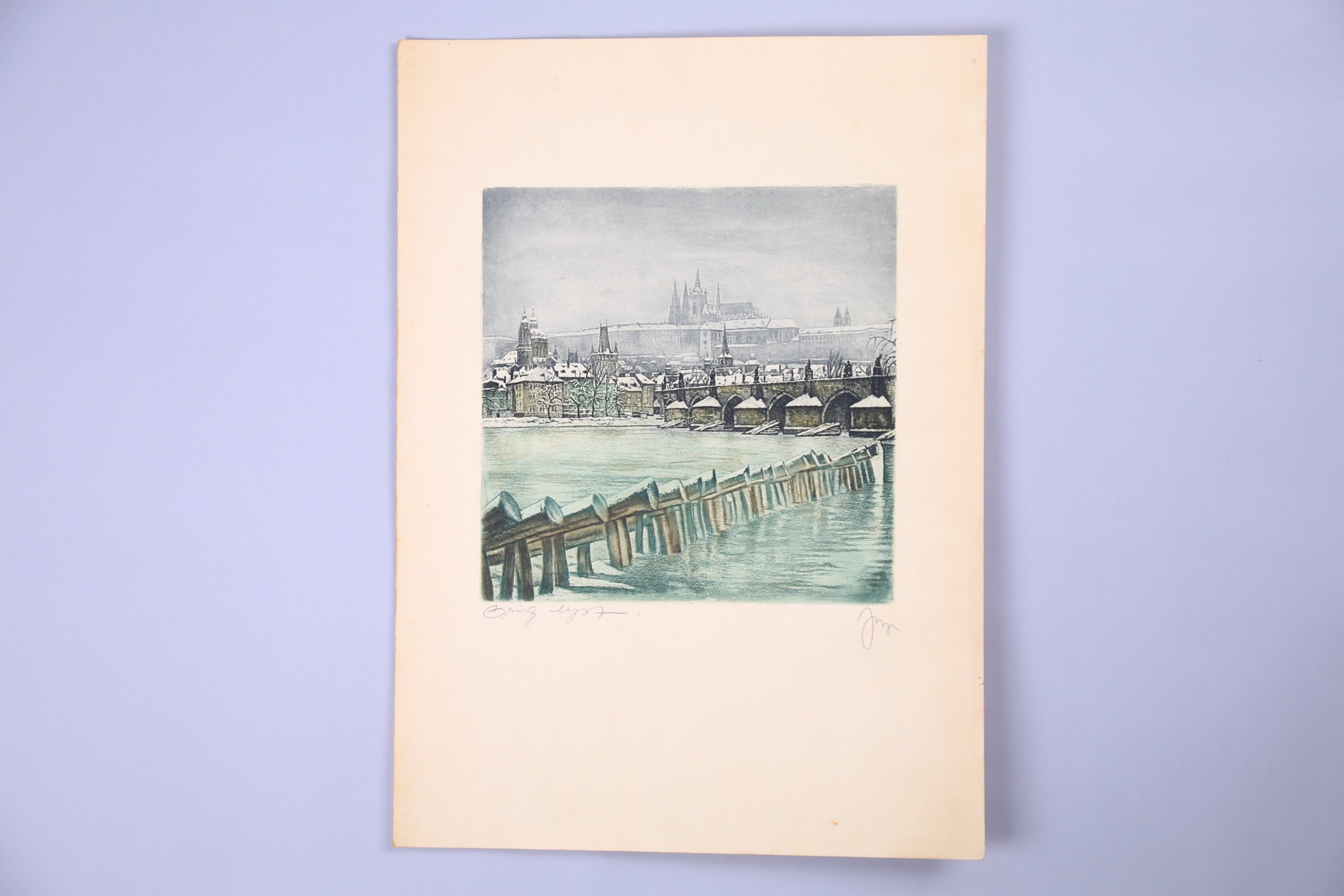 - Václav Soucek (Tchèque, 1887-1941), Vue de Saint Vit Prague, Eau-forte signée au crayon, L'image : Haut. 23 Larg. 23,5 La feuille Haut. 43 Larg. 32,5 cm.
