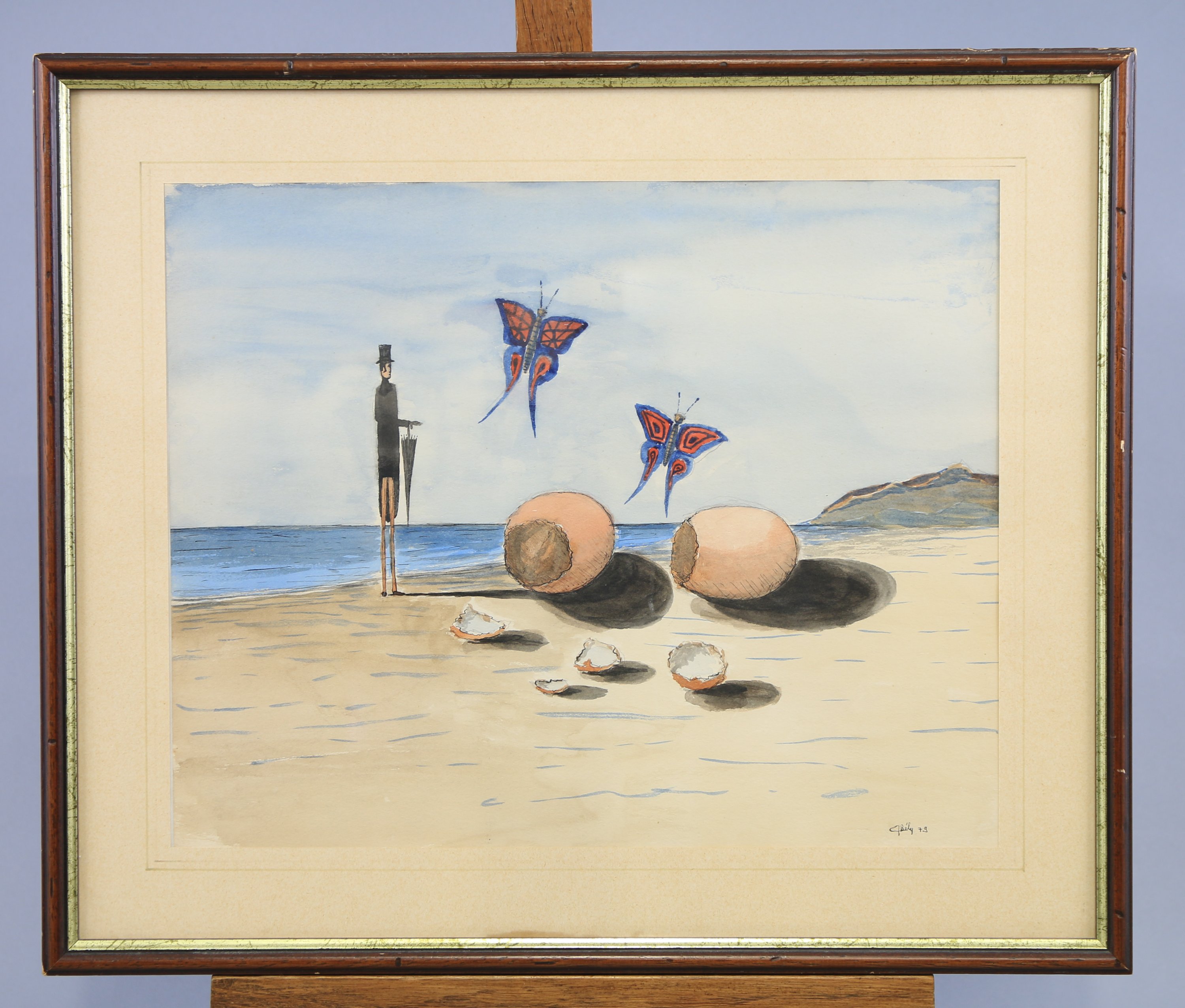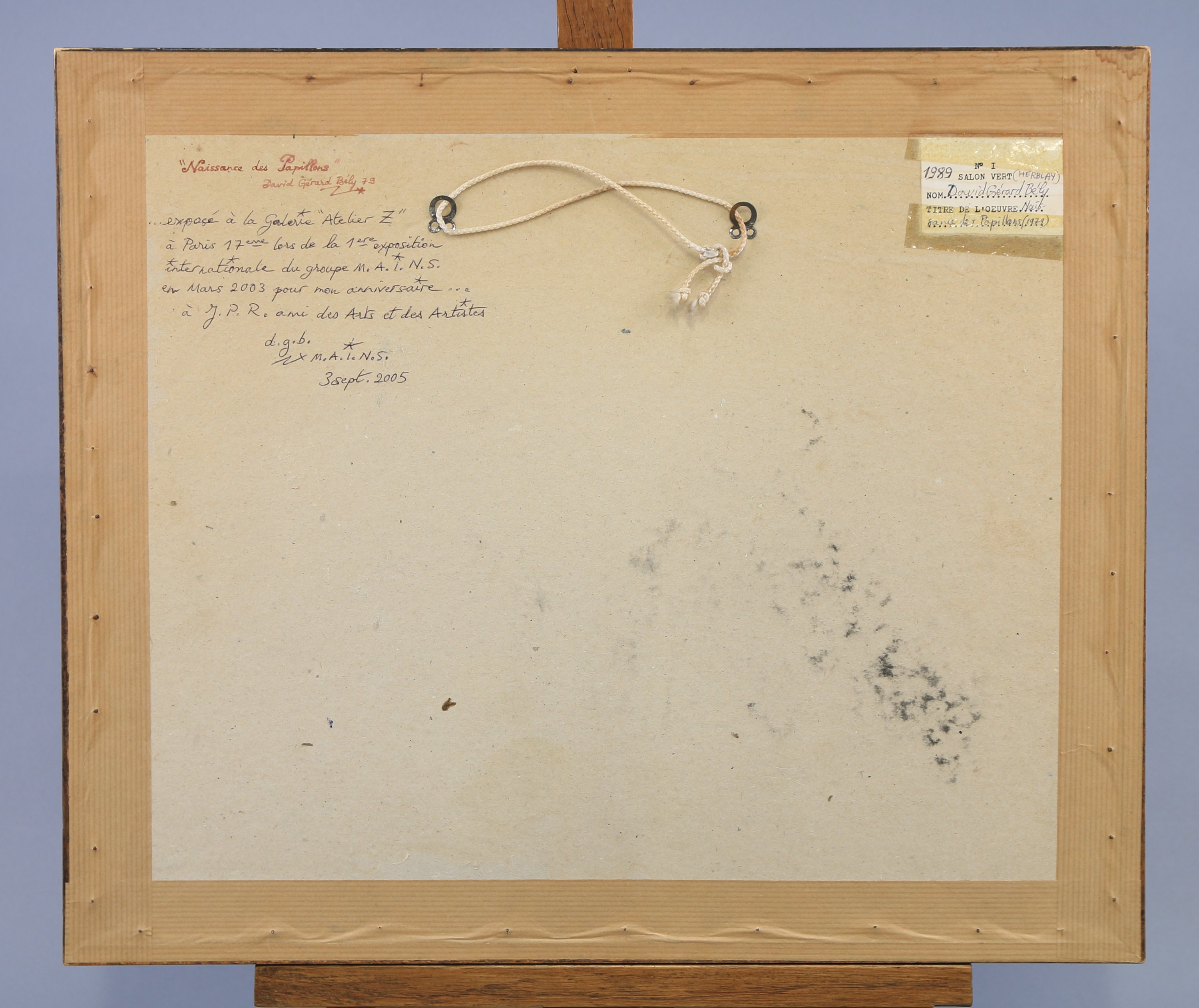 Contresignée, datée et dédicacée « exposé à la Galerie « Atelier Z » à Paris XVIIe lors de la 1ere exposition internationale du groupe M.A.I.N.S en mars 2003 pour mon anniversaire à J.P.R ami des Arts et des Artistes d.g.b M.A.I.N.S 3 septembre 2005.