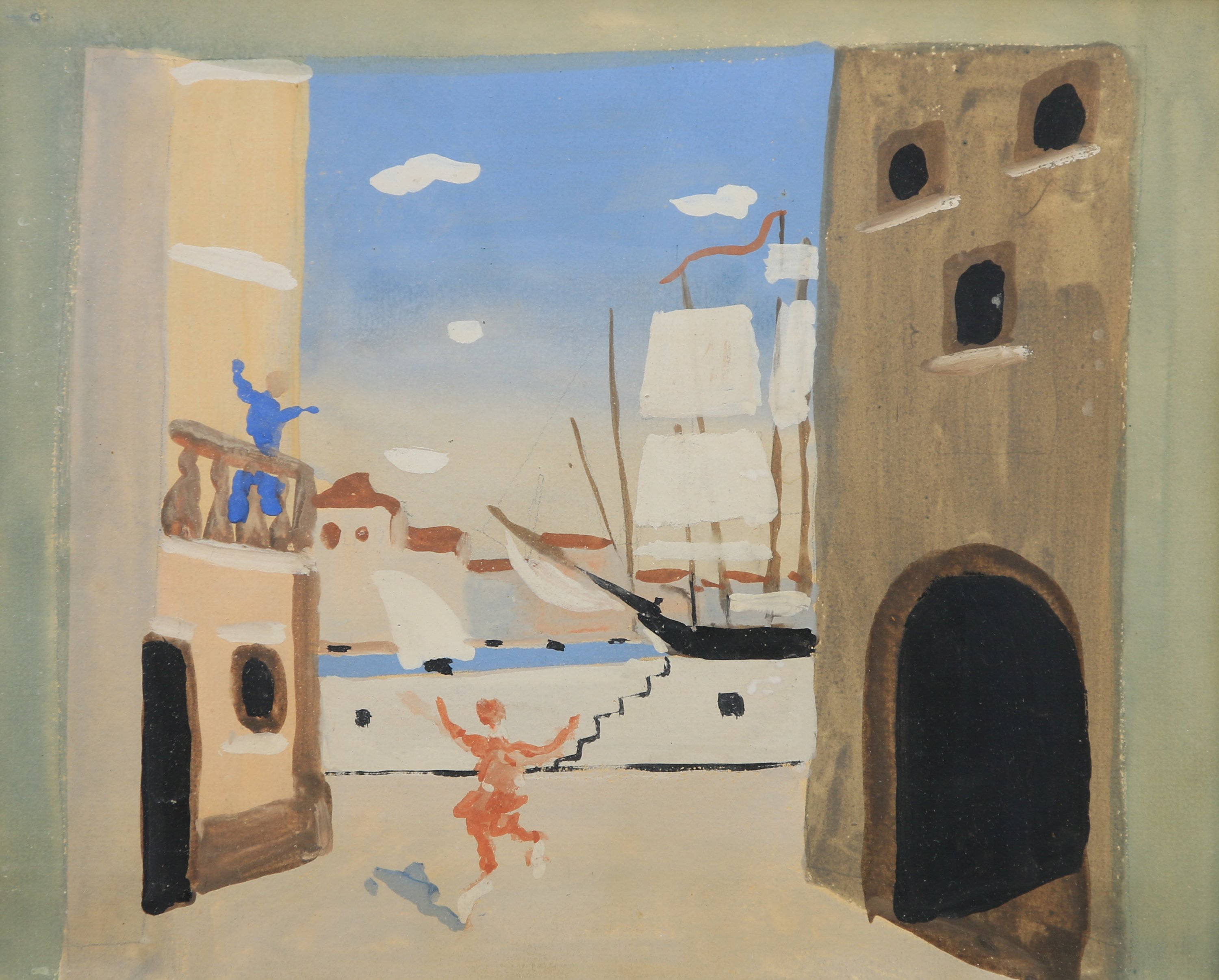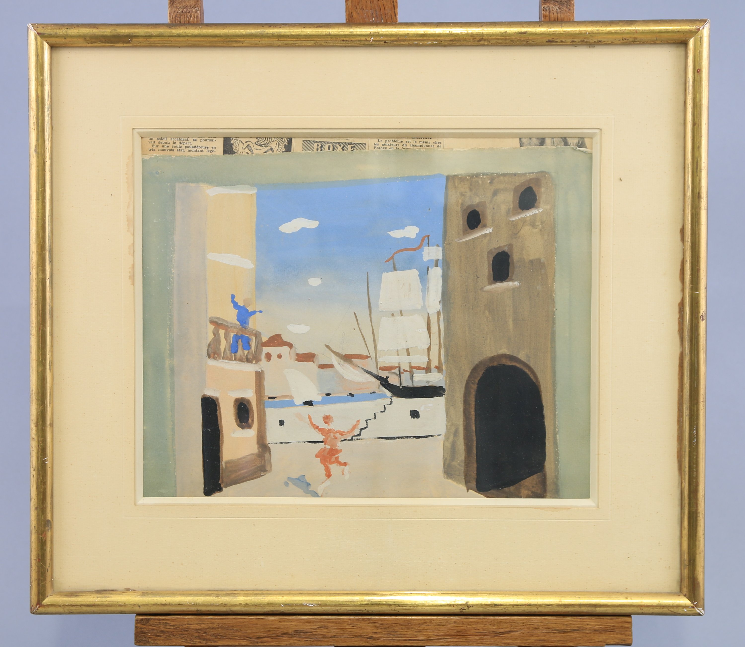 Joint : Ecole du XXe siècle. Projet de décor de théâtre. Gouache. Haut. 23 Larg. 28,5 cm.
