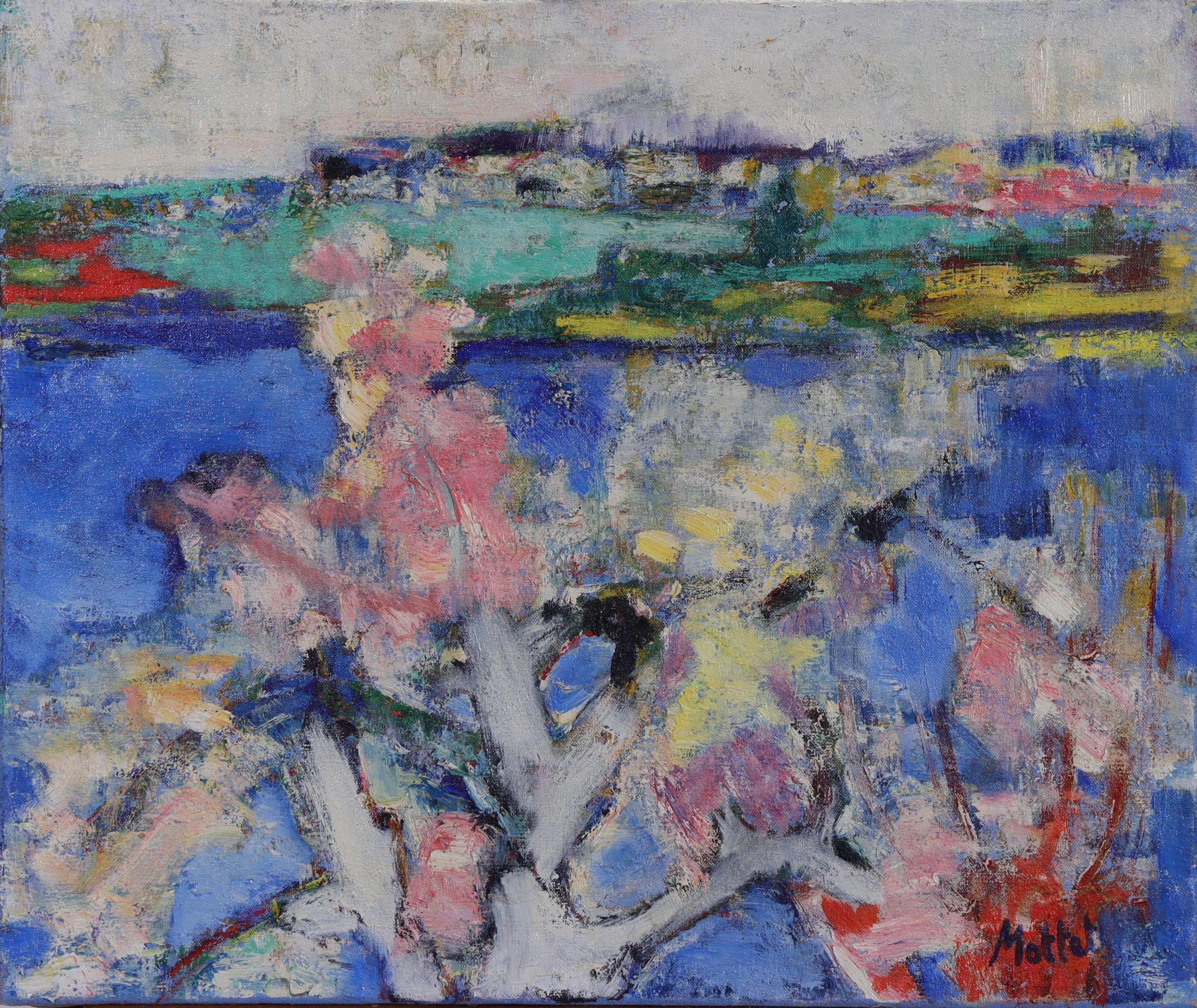 Signée en bas à gauche. Etiquette manuscrite au dos « Toile / 34 / Mottet / Huile (46x54).