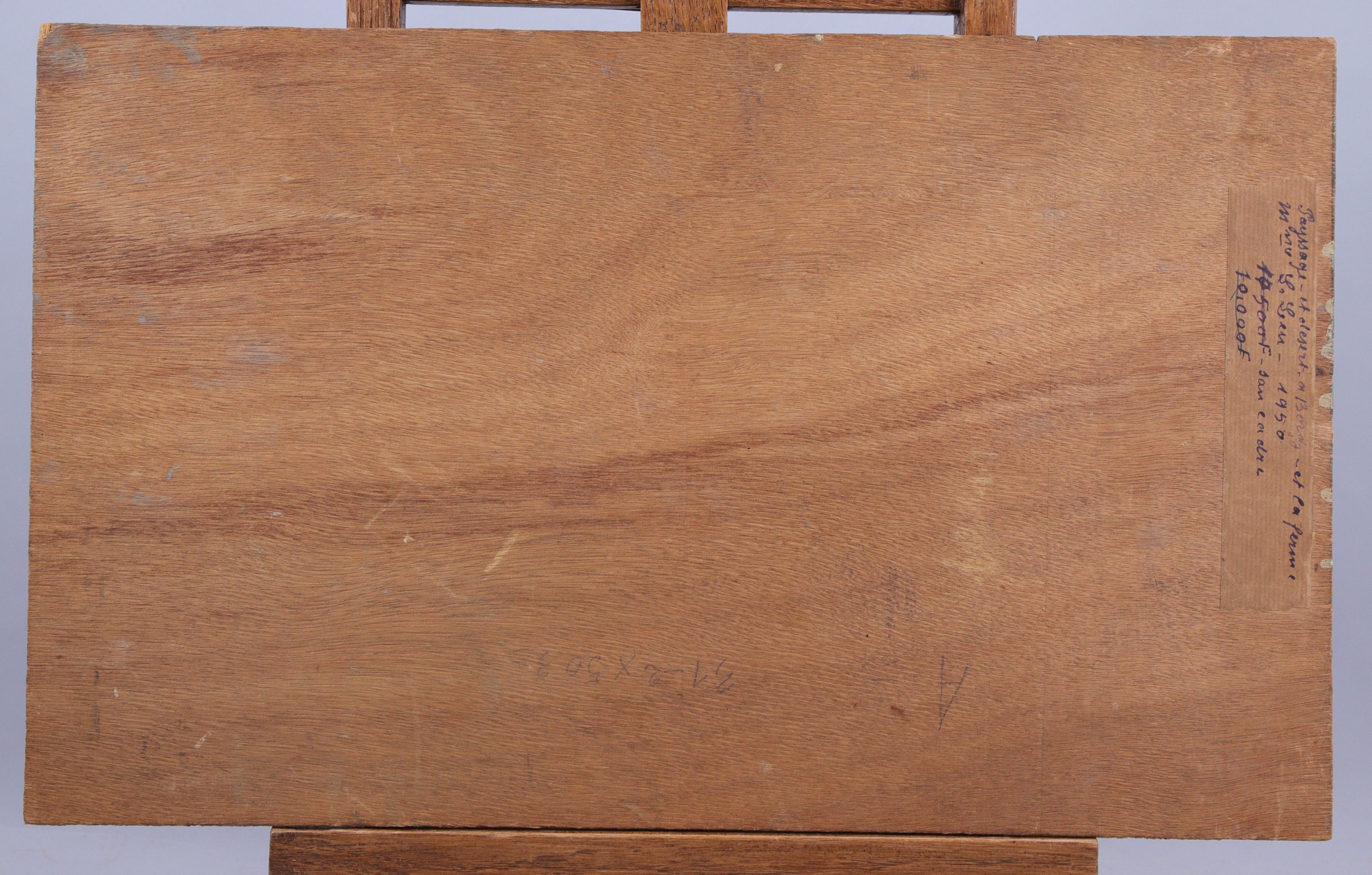 Etiquette manuscrite au revers : "Paysage et désert à Bordj et la ferme / Mme Le Lieu (?) - 1950 / 10.500 F - sans cadre / 10.000 F".