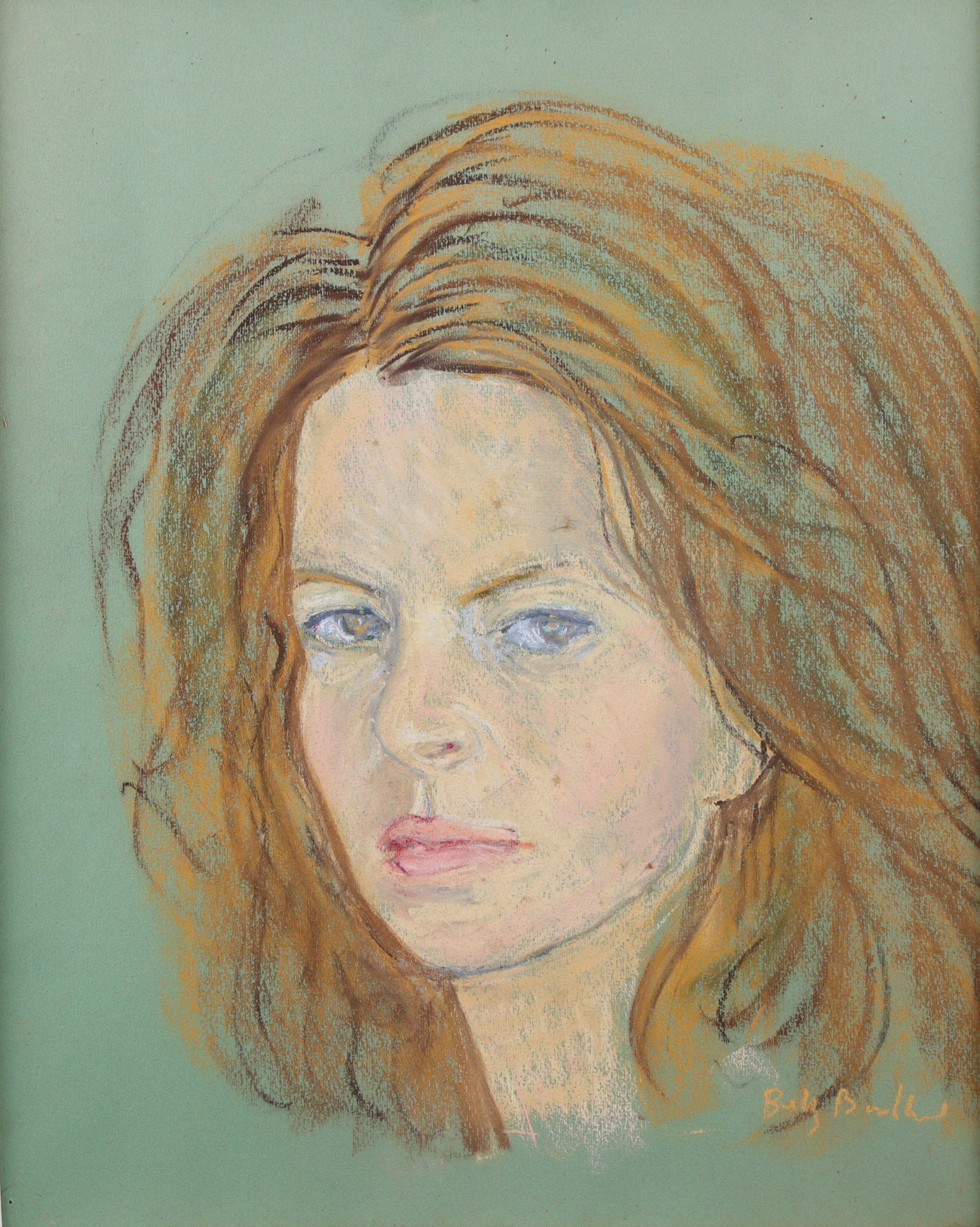 - Ecole moderne, Portrait de jeune femme. Pastel. Haut. 44 Larg. 36 cm.