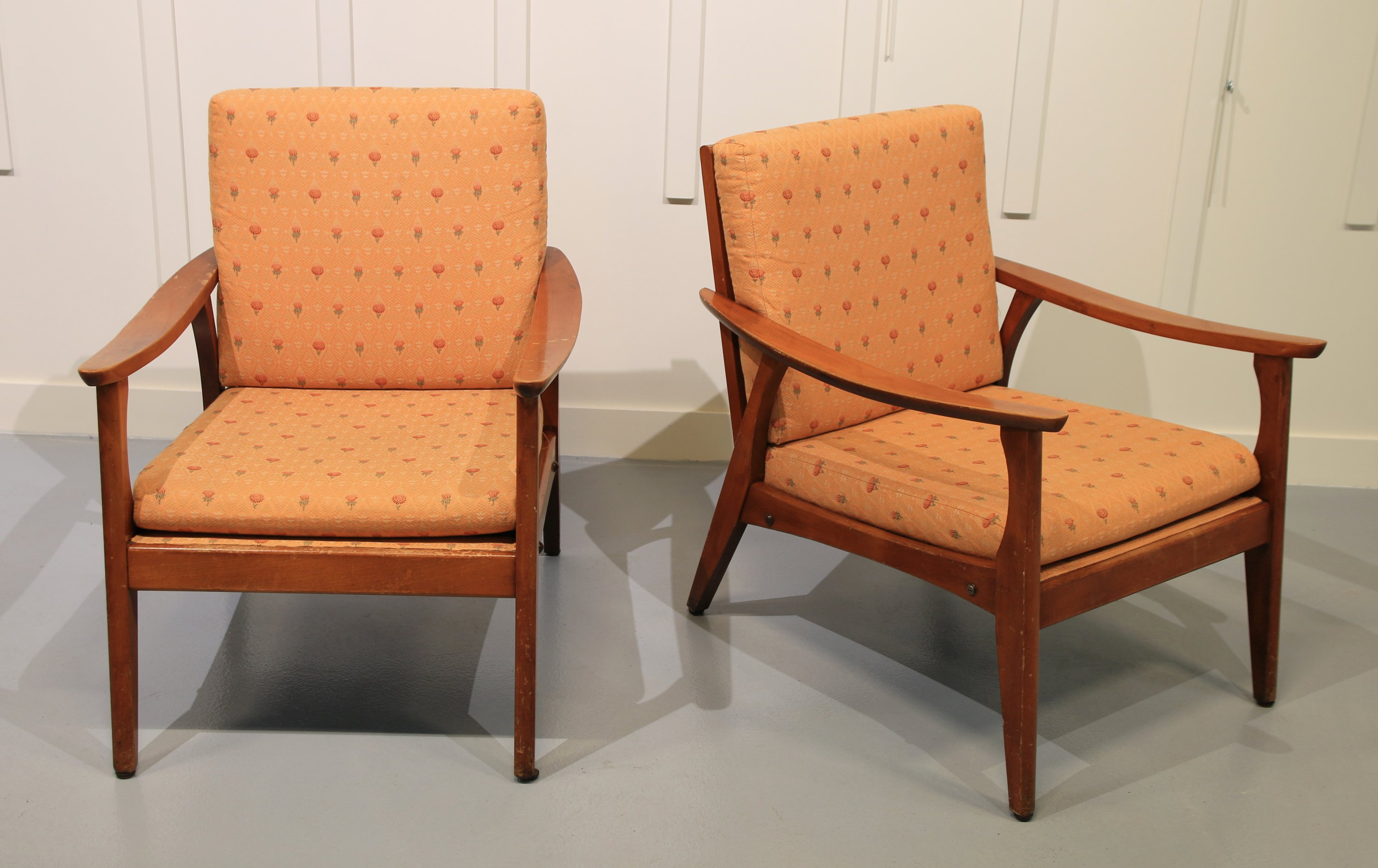 en bois verni à dossier ajouré, les accotoirs en méplat. Quatre pieds compas.