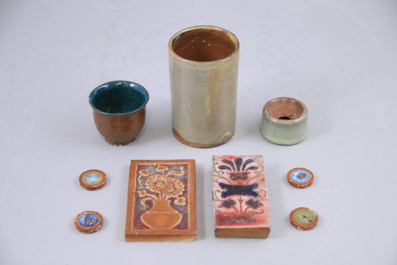 Deux plaques, deux vases, quatre pastilles et un encrier