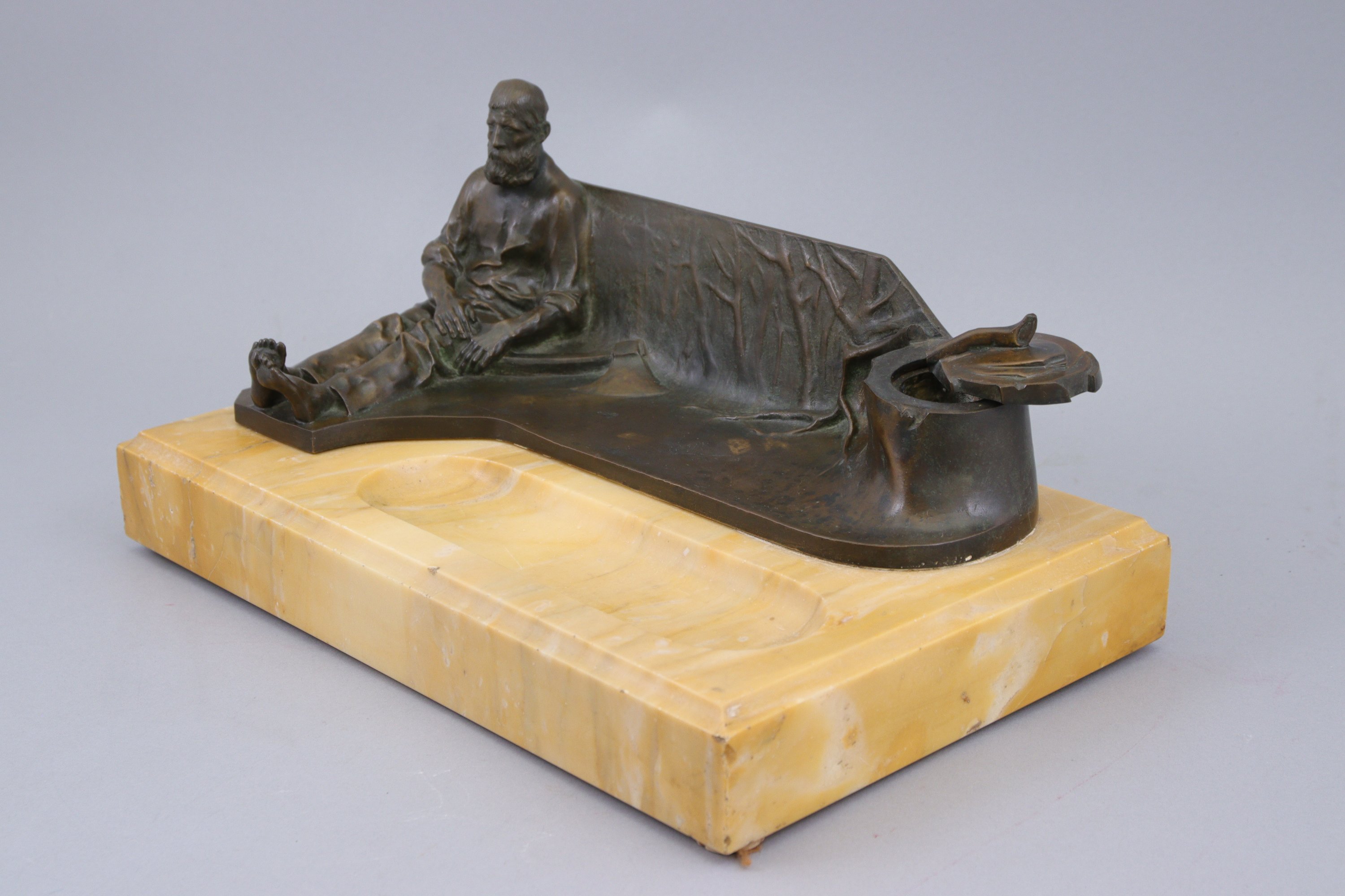 en bronze patiné, sur un socle en marbre jaune de Sienne.