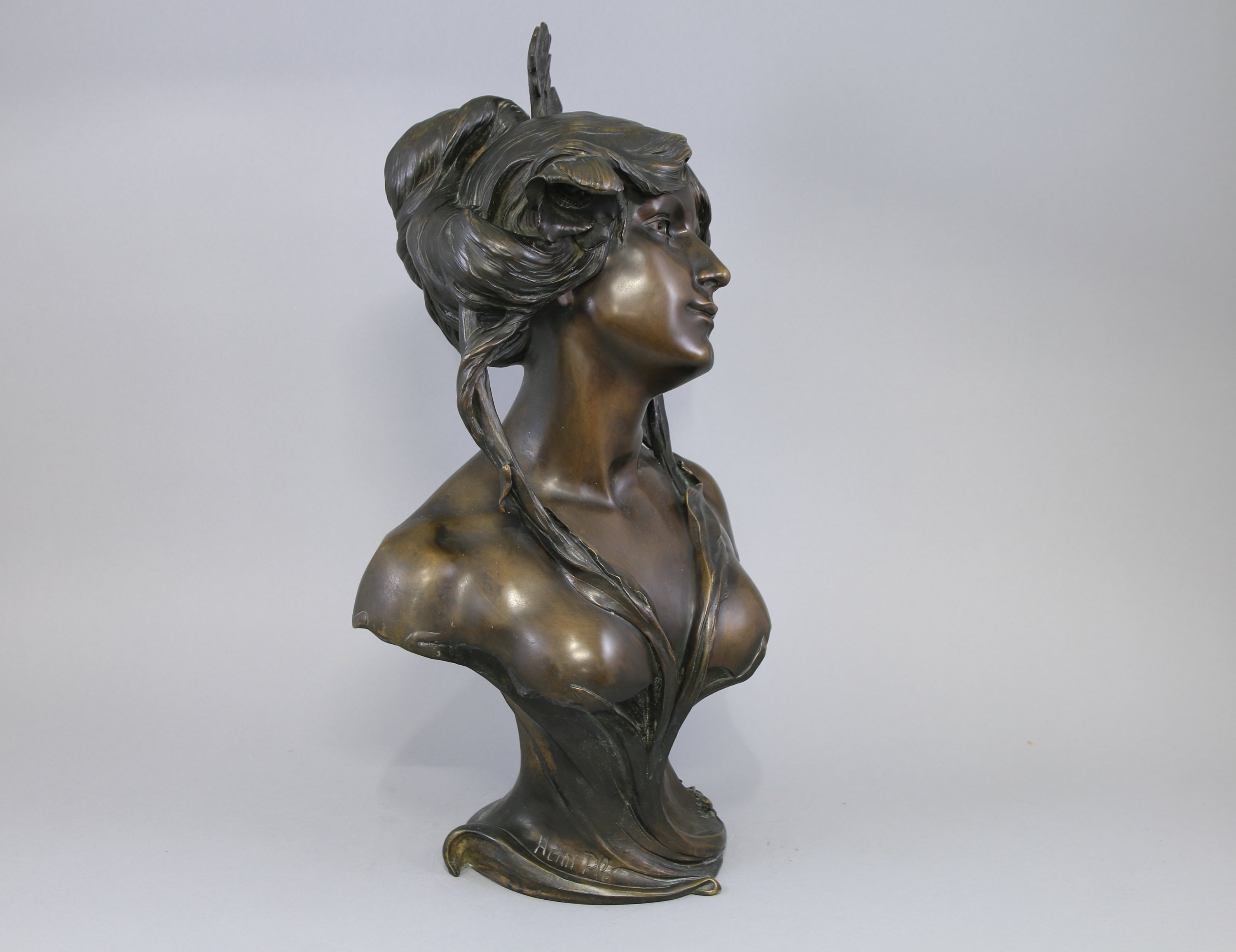 L'oeuvre d'Henri Plé est plurielle, offrant une diversité de sujets s'inscrivant dans le goût de la IIIe République en général et de l'Art nouveau en particulier. Ici, il offre un buste de femme à la coiffure parée de fleurs et feuilles se prolongeant sur un pied mouvementé. Cette oeuvre n'est pas sans rappeler "La Nature" de son confrère Alfons Mucha, créée entre 1899 et 1900.