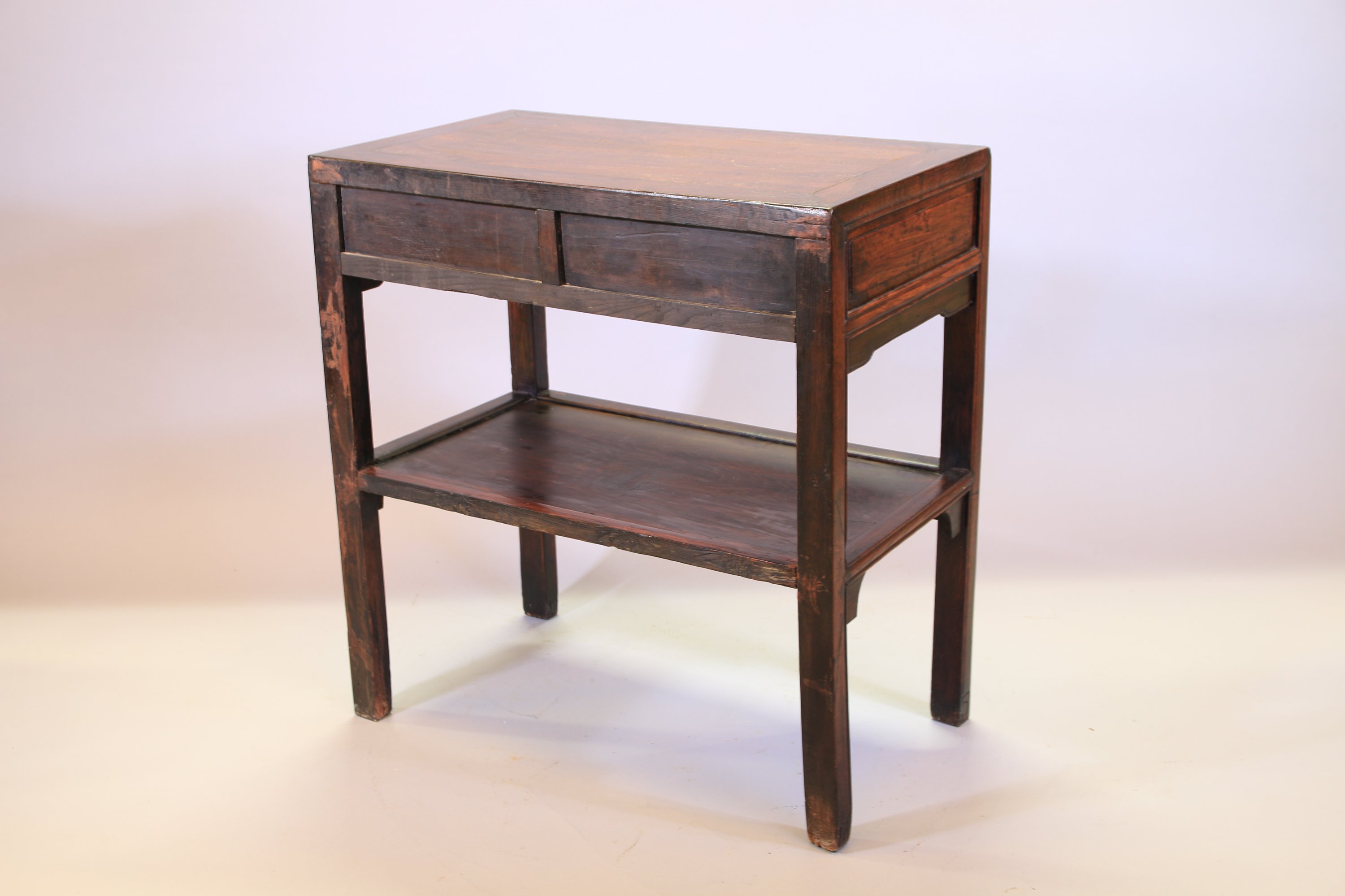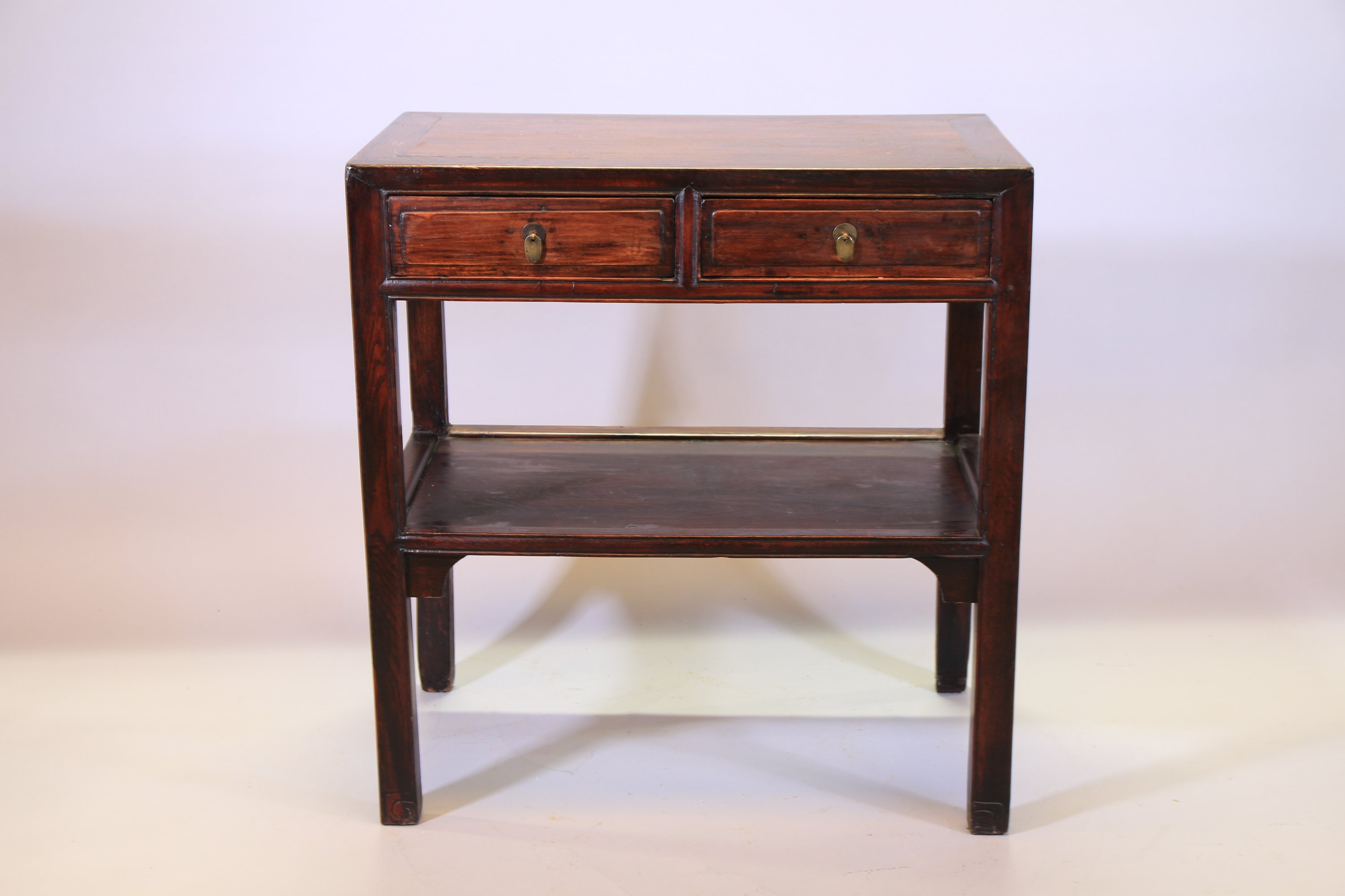 rectangulaire en bois exotique, ouvrant par deux tiroirs en ceinture et un plateau en partie inférieure.