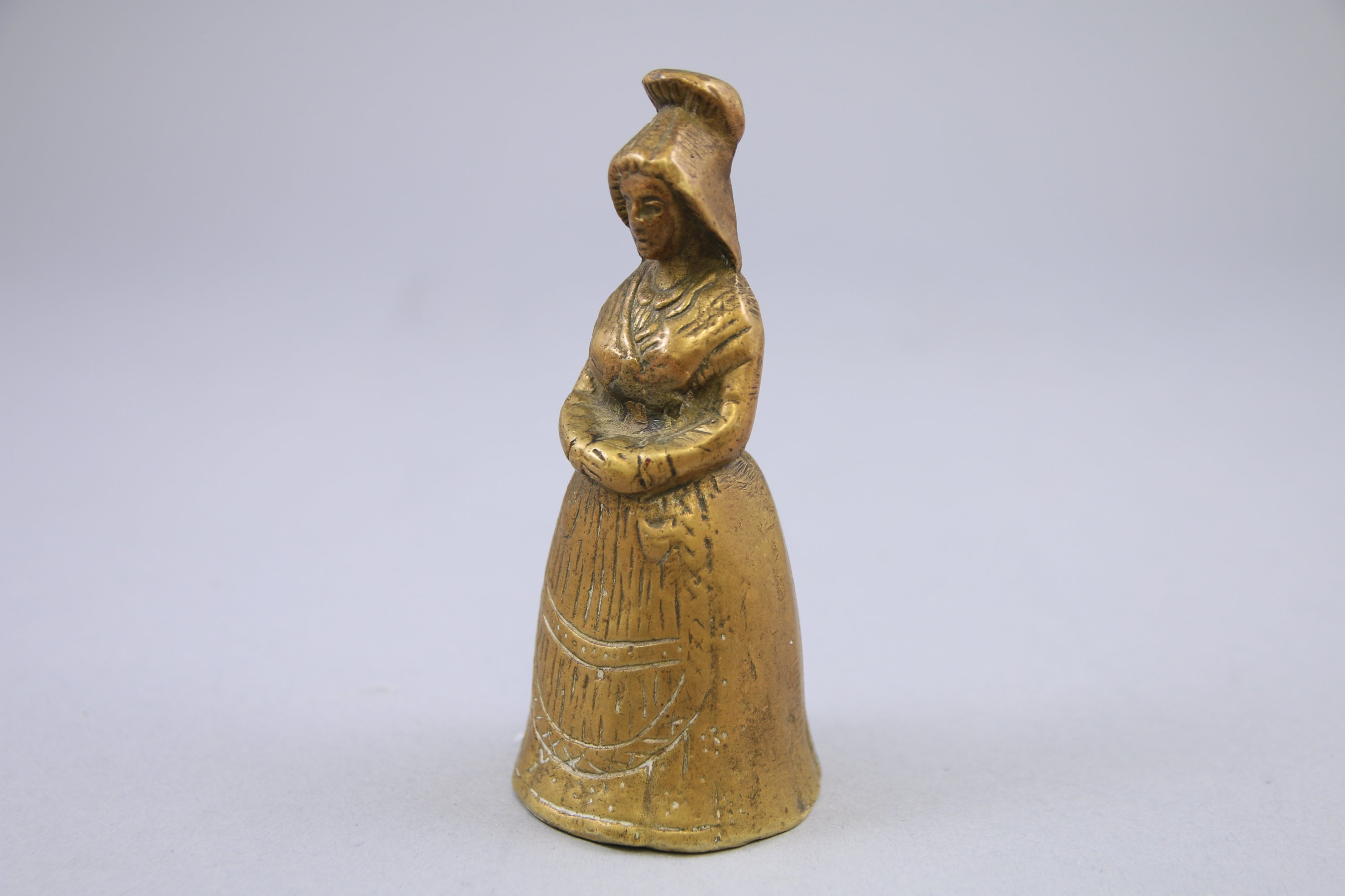 Joint : Cloche en forme de femme au tablier en bronze. Haut. 11,5 cm.