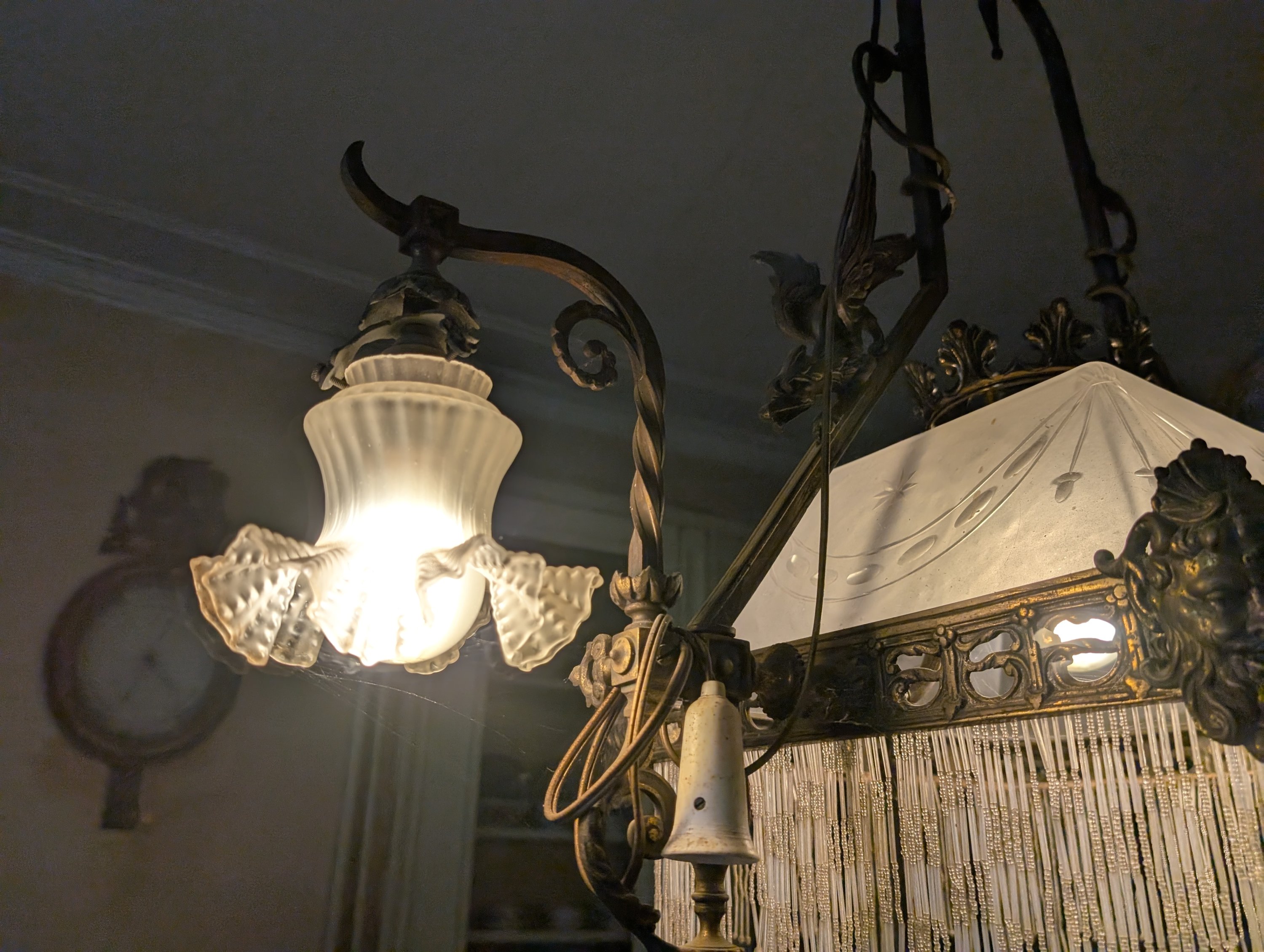 de forme rectangulaire, à deux bras de lumière en verre et bronze à motif de dragons courant et masques d'hommes.