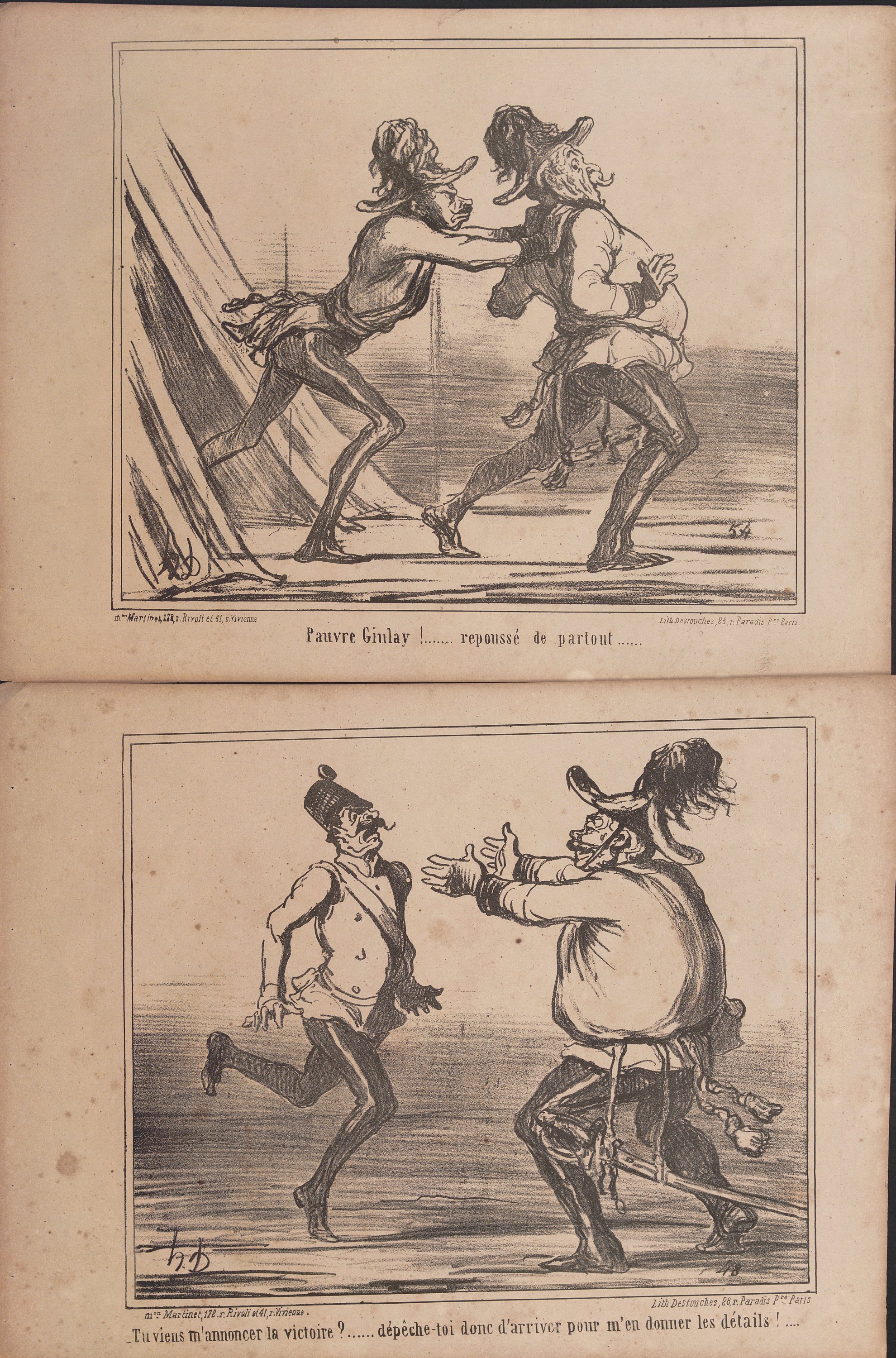 37 illustrations lithographiques extraites du journal Le Charivari, par Ch. Vernier, Bouchot, etc. 37 x 26 cm (états divers).