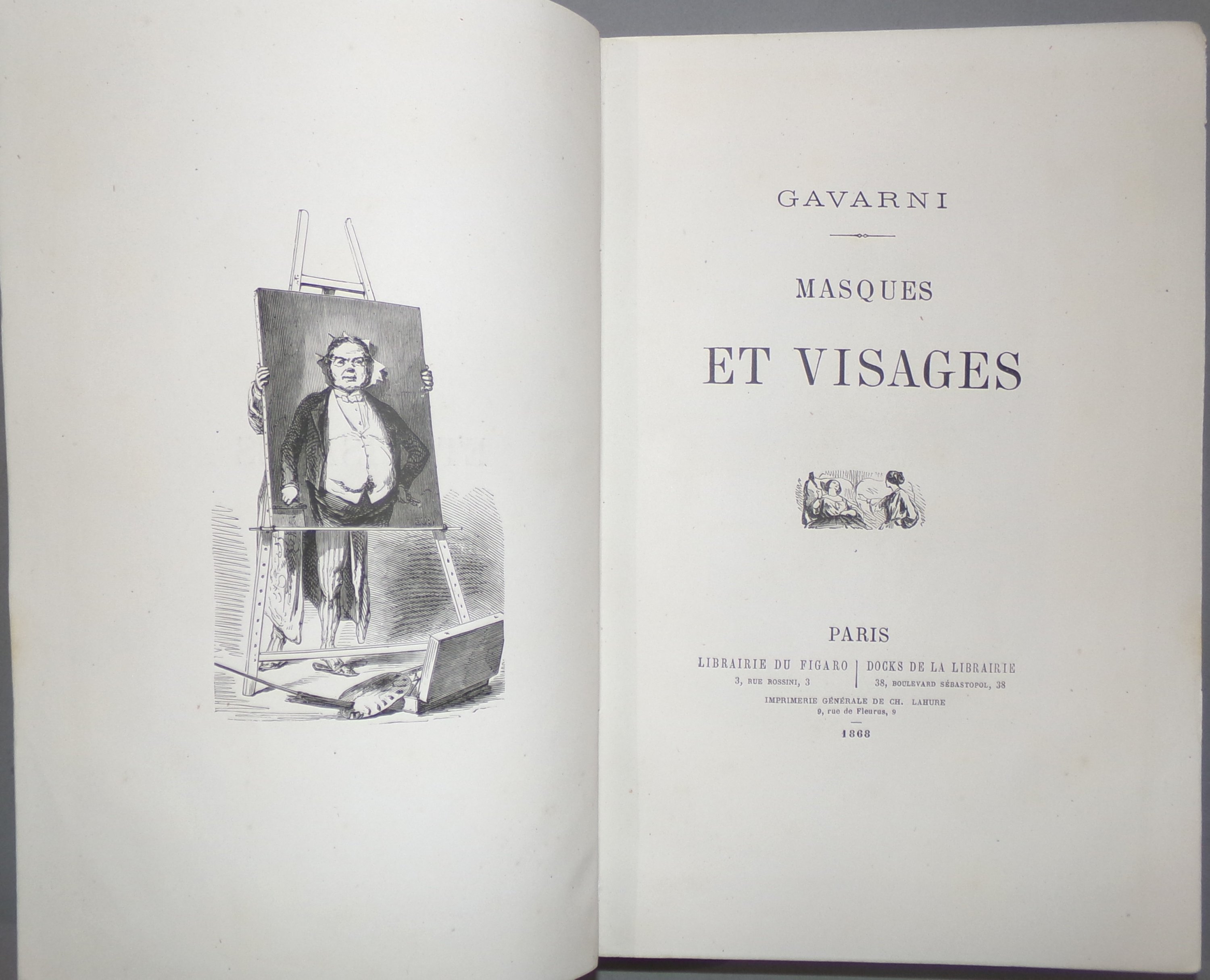 Gavarni, Œuvres nouvelles, Masques et visages, Calmann-Lévy, Paris, album de pl. in-fol. broch. (débroch.) ; Album in-fol. incomplet Le masque de fer paru dans L’Echo de Paris ;