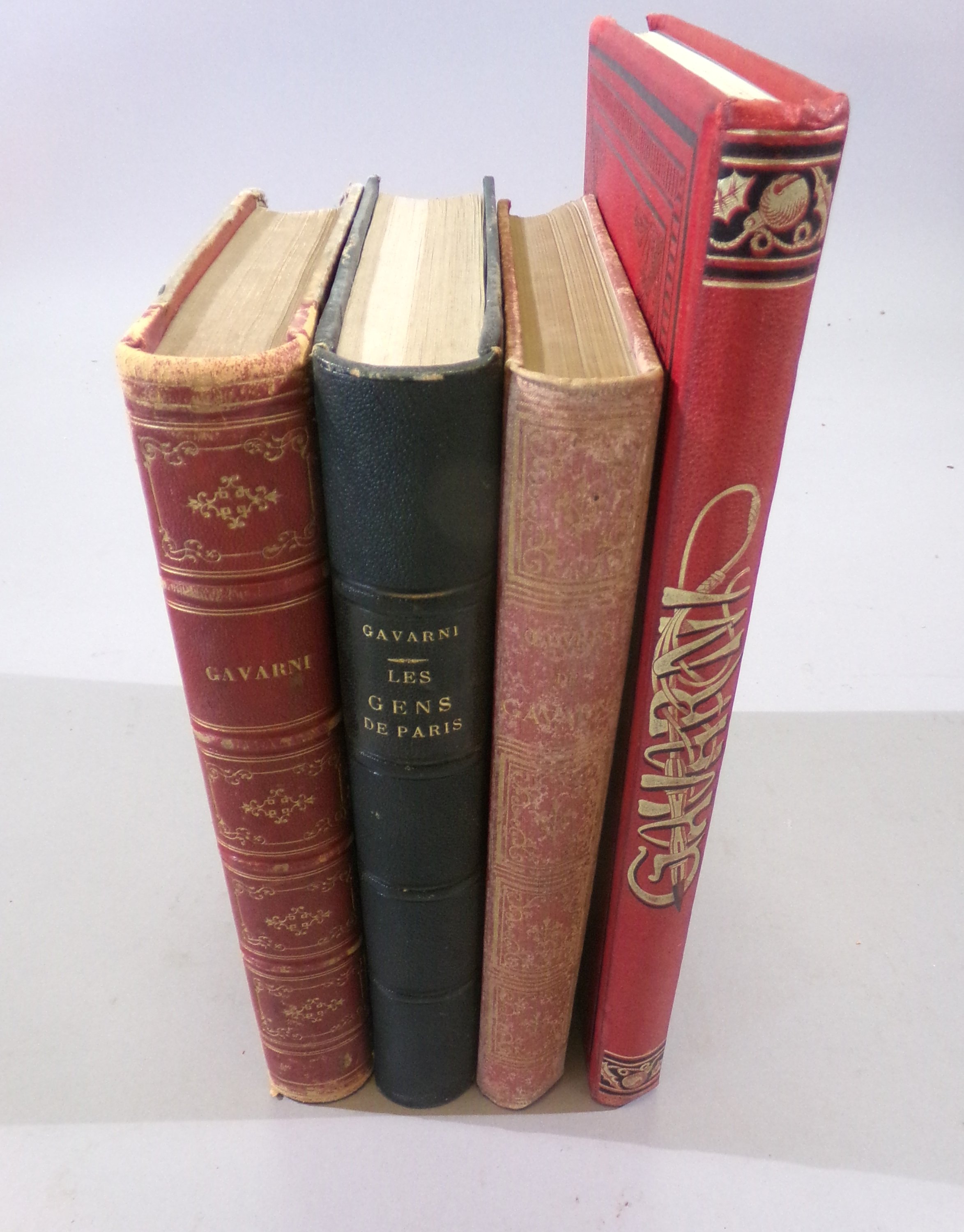 Oeuvres choisies de Gavarni. Edition spéciale publiée par Le Figaro pour ses abonnés. Paris, Hetzel et Blanchard, 1857. In-fol. rel. percaline. Album comprenant une préface de Théophile Gautier et plus de 520 gravures sur bois de Gavarni illustrant : Les Enfants Terribles, Traduction en langue vulgaire, Les Lorettes, Les Actrices, Fourberies de femmes en matière de sentiment, Clichy, Paris le soir, Le Carnaval à Paris, Paris le matin, Les Etudiants de Paris, La Vie de Jeune Homme, Les Débardeurs suivis de Les Gens de Paris (usures à la couv.) ;