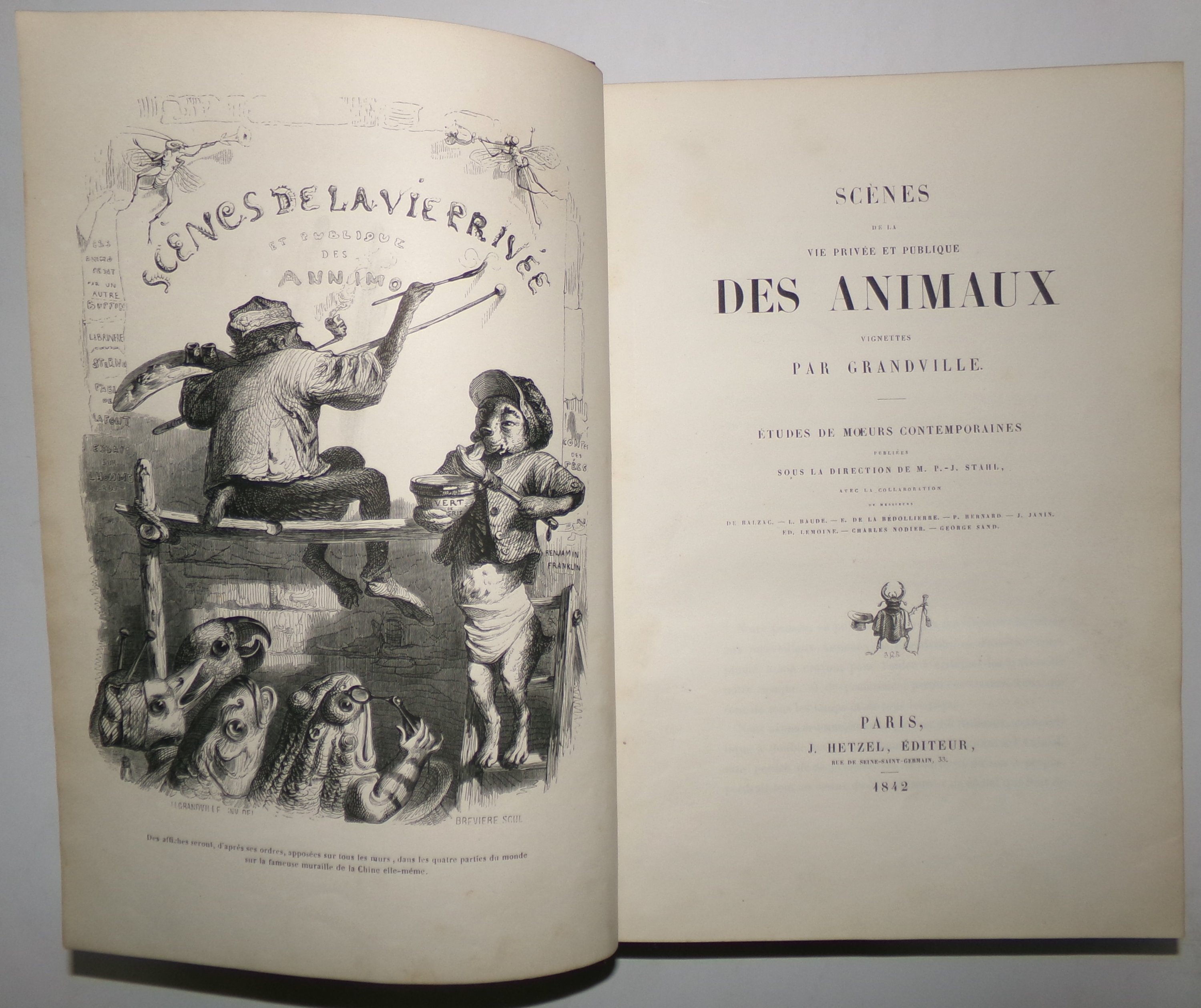 Jean Isidore Grandville, Scènes de la vie privée et publique des animaux. Tome 1er. Paris, Hetzel, 1842. In-4 rel. in-4, 387 pp. et tables. Bel exemplaire.