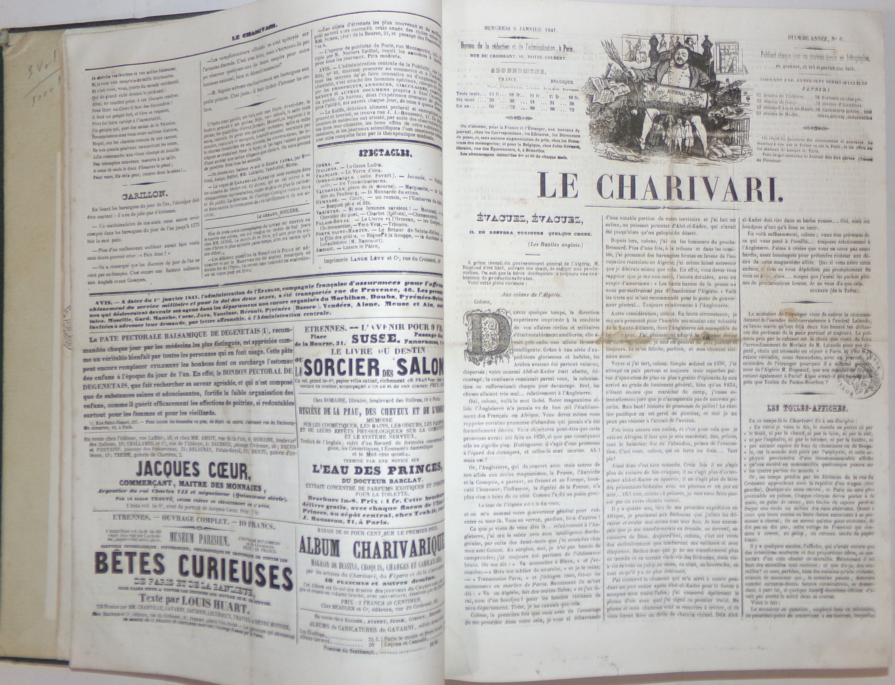 Premier quotidien illustré satirique du monde, Le Charivari parut de 1832 à 1937. Fondé le 1er décembre 1832 par Charles Philipon comme un journal d'opposition républicaine à la monarchie de Juillet, le journal satirique à vocation distractive s'affirma au cours de son histoire tantôt radical, conservateur, républicain ou encore anticlérical. Ses auteurs les plus notables furent notamment Taxile Delord ou encore Agénor Altaroche et ses caricaturistes les plus marquants furent entre autres Philipon, Nadar, Gustave Doré, Honoré Daumier, Cham, Gavarni, Pigal, Traviès, etc.