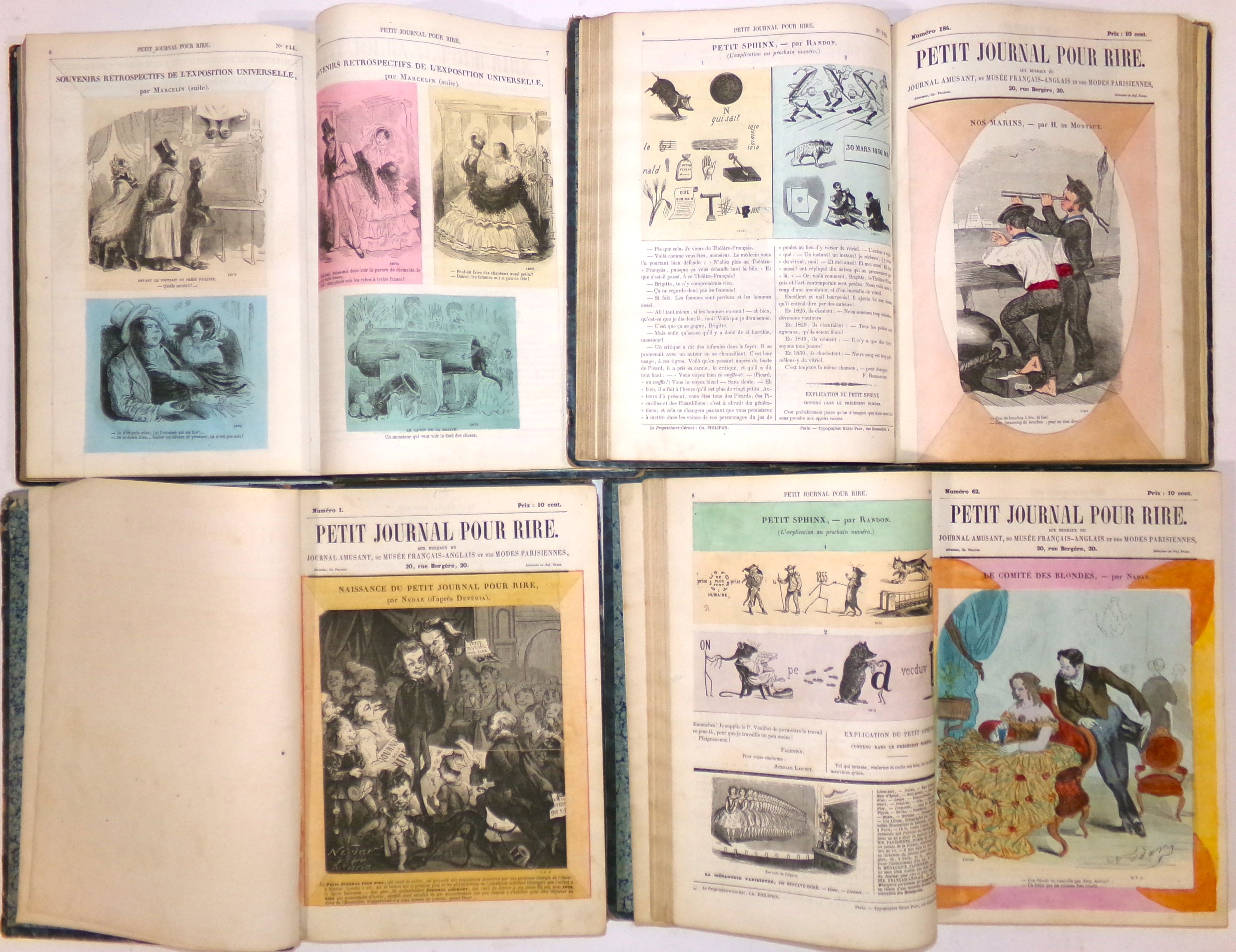 Paraissant en même temps que Le Journal amusant, de 1856 à 1904, Le Petit Journal pour rire est un hebdomadaire paraissant le samedi, lancé le 23 février 1856 : il reprend la plupart des dessins du Journal amusant et la direction est assurée par Nadar, nommé rédacteur en chef, Eugène Philipon (1832-1874), fils du fondateur, puis Théodore Le Cerf. C’est une version « populaire », de format plus petit et de huit pages, moins cher aussi, dont la plupart de ses illustrations sont reprises du Journal amusant. Illustrés par les grands caricaturistes de l’époque : Nadar, Gustave Doré, Alfred Grévin, Gilbert Randon, Honoré Daumier, Cham, Bertall, Draner, etc.