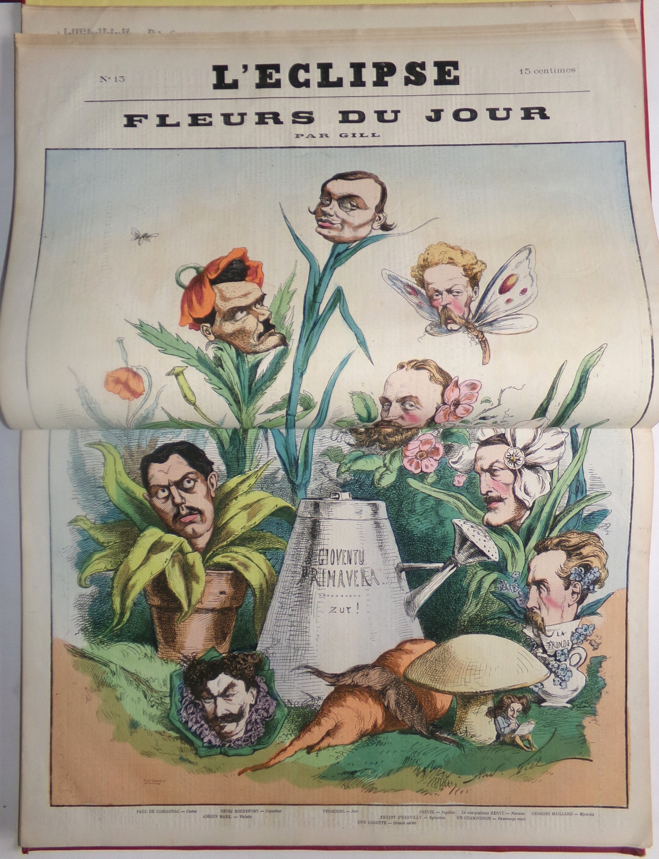 (1 vol.) n°102 (2 janvier 1870) au n° 139 (18 septembre 1870) suivi des suppl. n°1 à 5 (du 18 sept. 1870 à juin 1871, l’Eclipse ne parut pas, mais elle publia durant ces neuf mois d’interruption, 5 feuilles supplémentaires) y compris suppl. du n°119, n°103bis, 105bis, 106bis, 114bis, 116bis, 128bis, 129bis, 132bis, 133bis, 134bis, complet ;