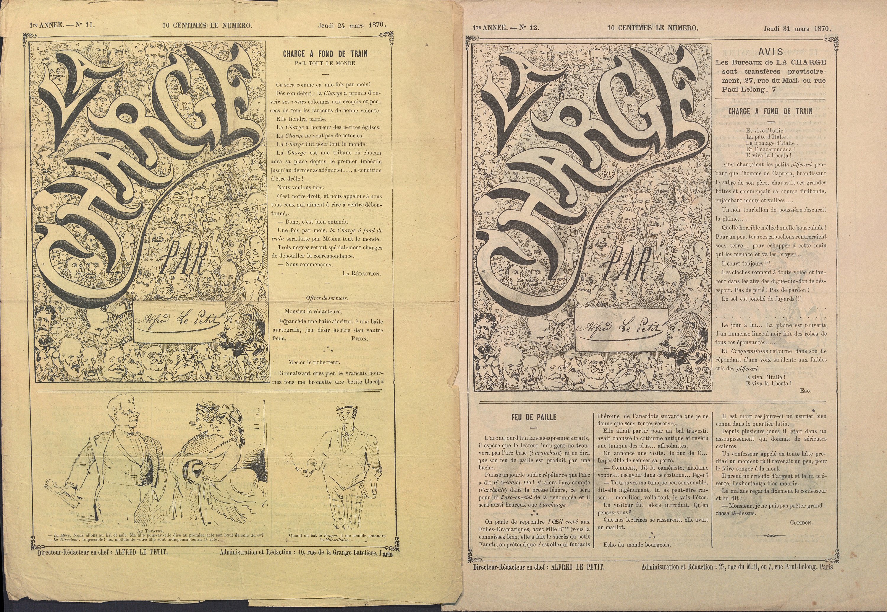 1ère série, n°11 (24 mars 1870) + supplément « Les défenseurs de noir », et n°12 (31 mars 1870) ;