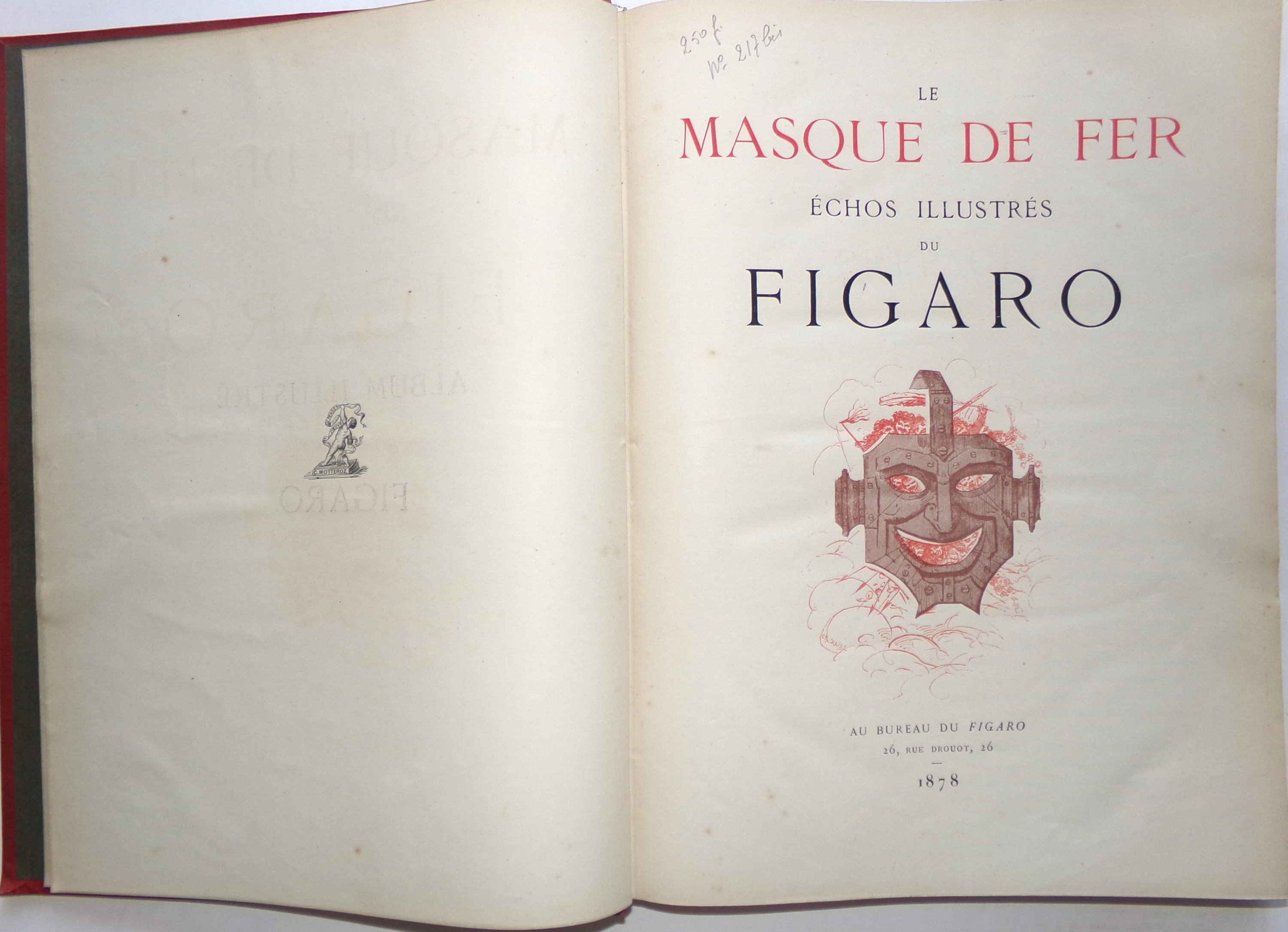 Henri de Villemessant et consorts, Le Masque de Fer. Echos illustrés extraits du Figaro. Paris, au bureau du Figaro, 1878. In fol. rel. éditeur VI-264 pp. (rousseurs) ;