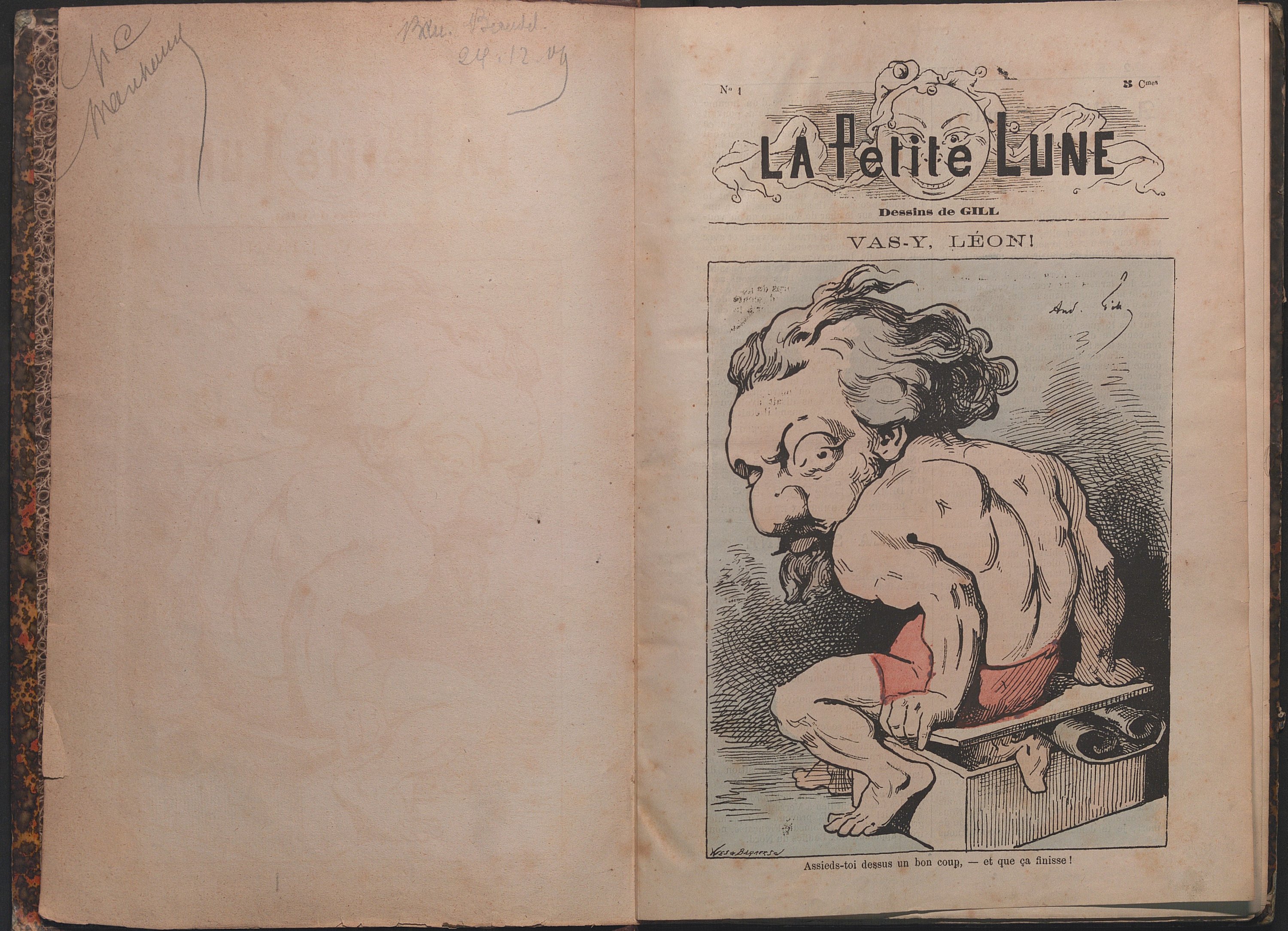 La Petite Lune, n°1 (juin 1878) au n°52 (juin 1879), collection complète ; journal républicain et anticlérical fondé par André Gill qui va inspirer Alfred Le Petit à créer son propre journal Le Sans Culotte ;