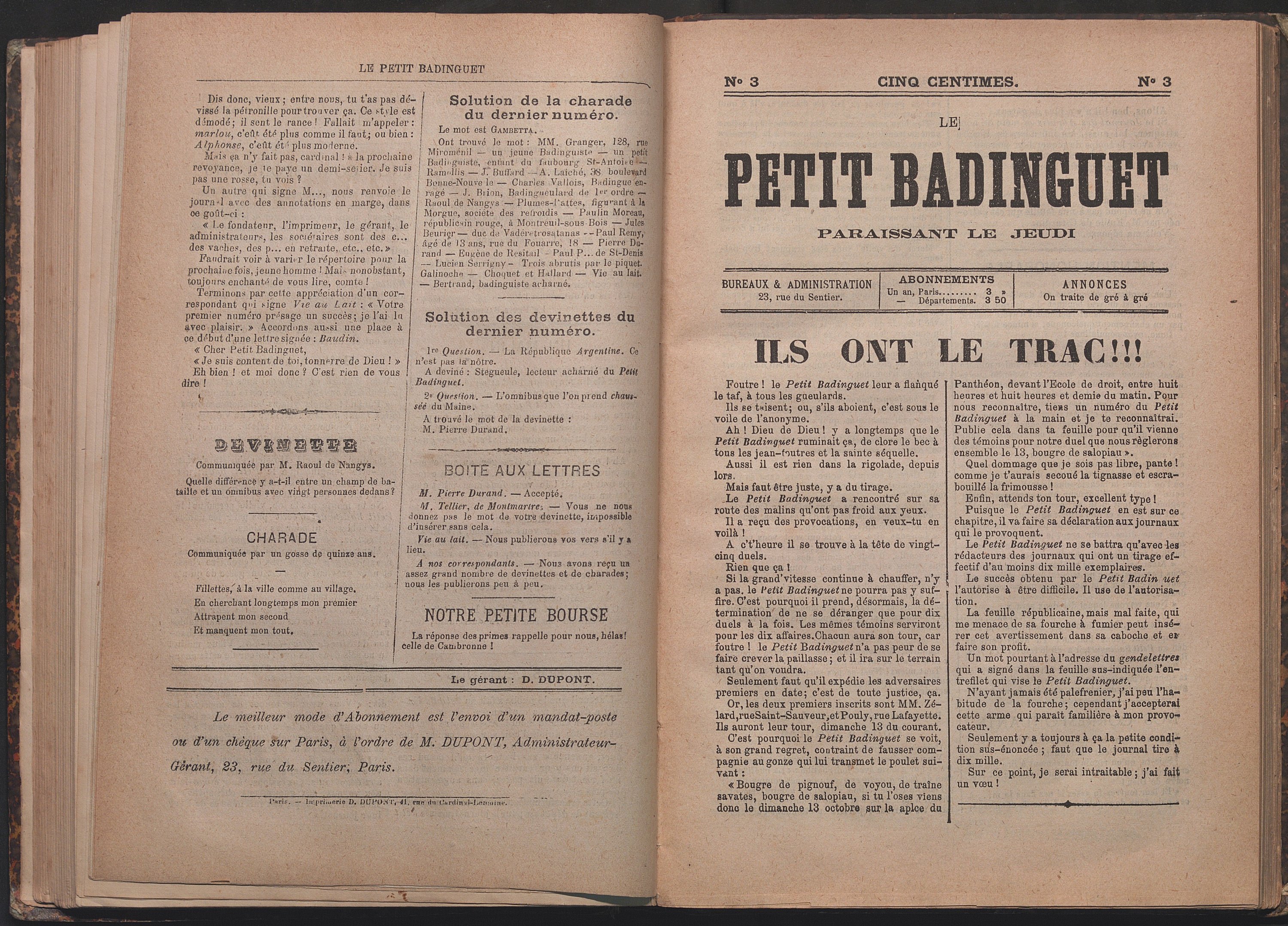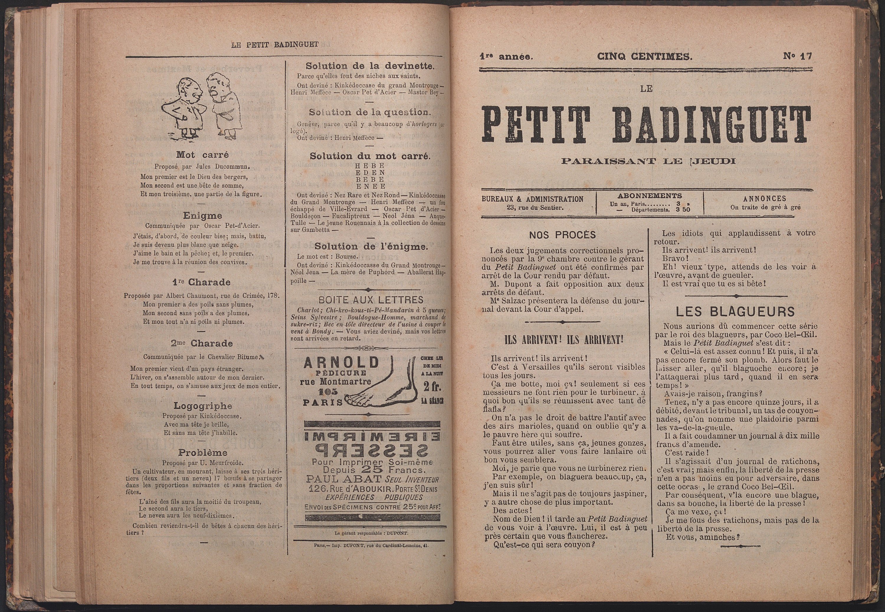 Le Petit Badinguet, n°1 (26 sept. 1878) au n°17 (16 janv. 1879), complet des 17 numéros sur 17 livraisons (rest. anc. au n°1) ;