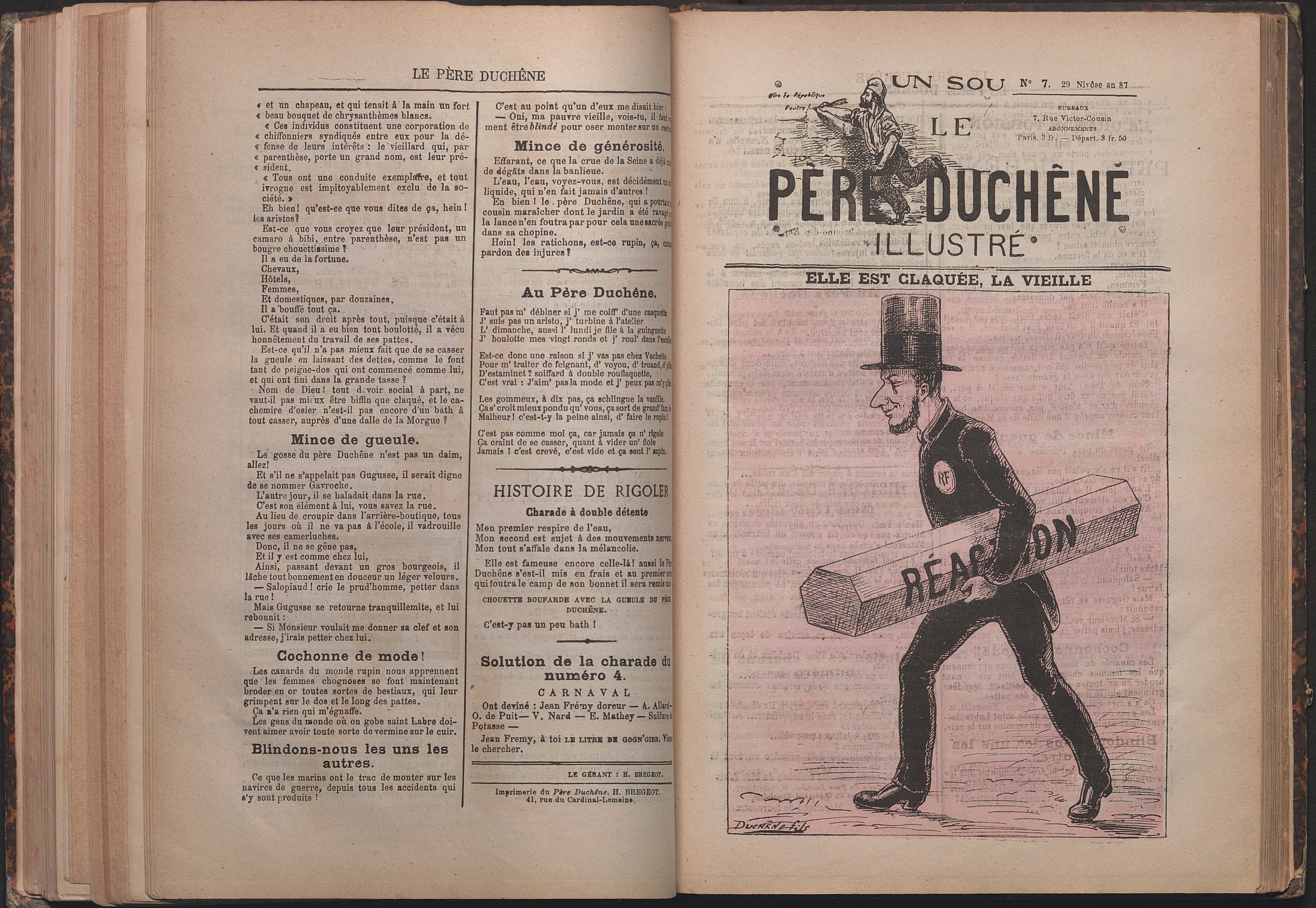 Le Père Duchêne illustré, n°1 (17 frimaire an 87 - 7 déc. 1877) au n°13 (10 ventôse an 87 - 28 fév. 1878), complet des 13 numéros sur 13 livraisons ;