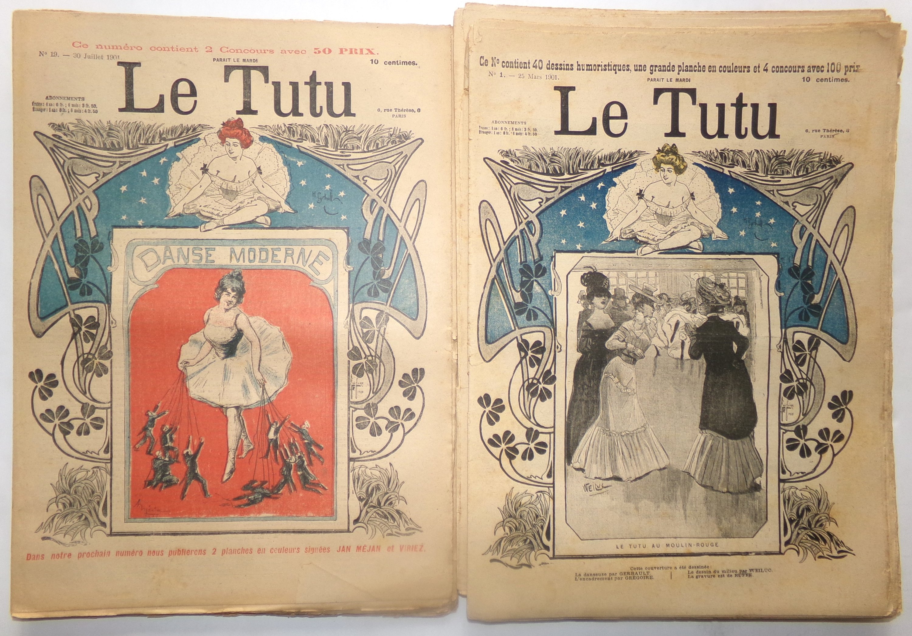 Le Tutu, hebdomadaire illustré, 38 numéros dont n°1 (25 mars 1901) au n°27 (24 sept. 1901) (mque, 3, 4 et 26) + doublons du n°9 au n°24 ;