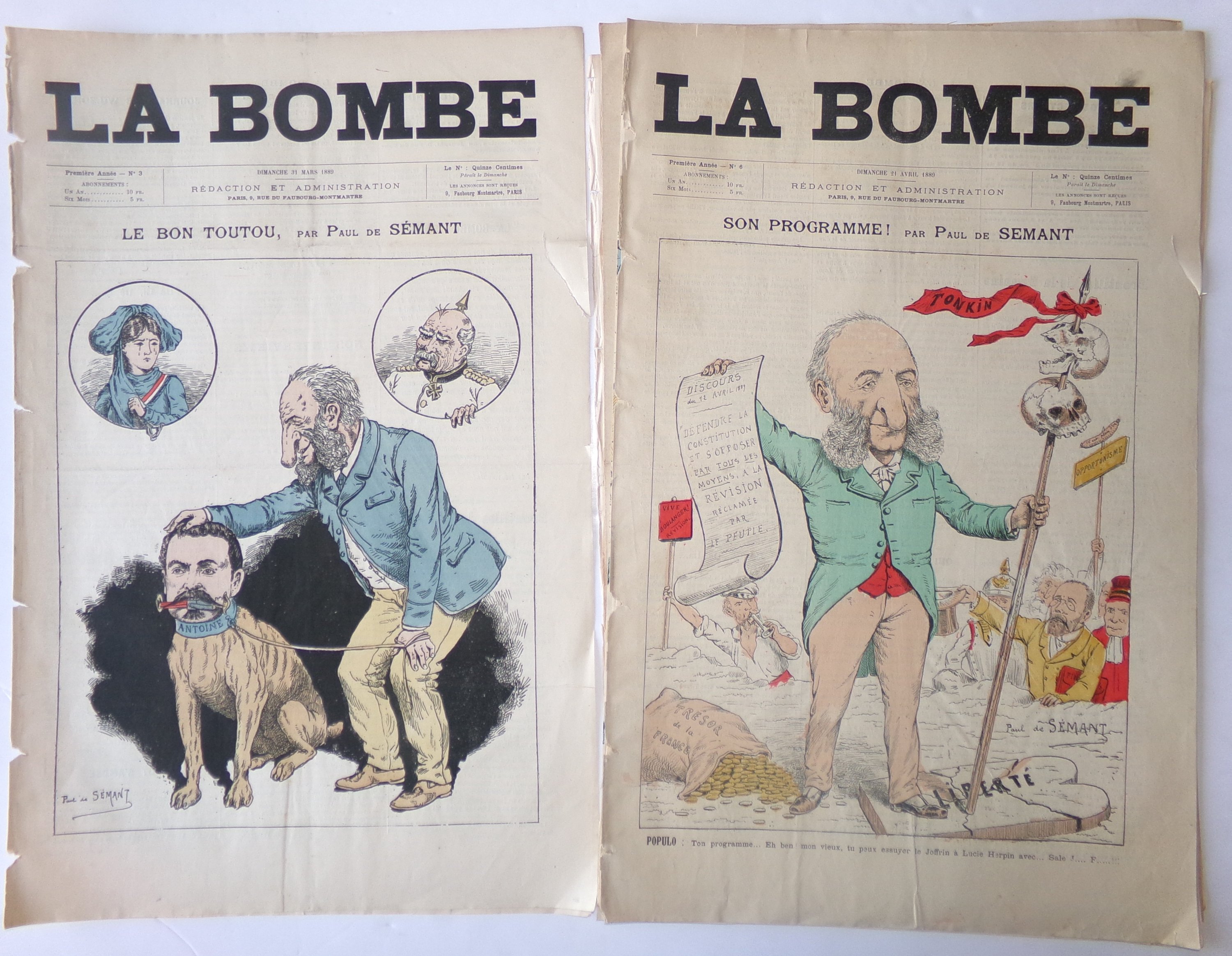 La Bombe, 6 ex. entre le n°3 (31 mars 1889) et n°16 (30 juin 1889) ;