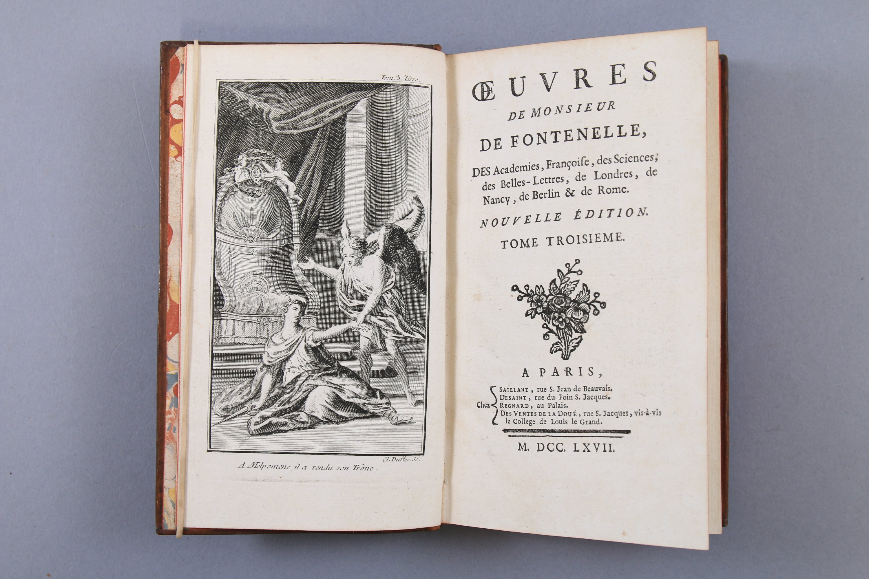 11 volumes in-8, plein veau raciné du temps. Frontispices et figures hors-texte. (Piqûres de ver dans la marge inférieure du tome V).