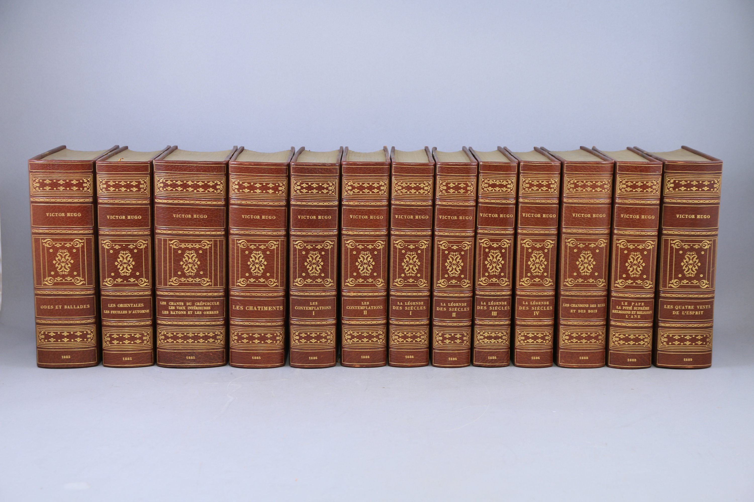 Superbe série, très décorative, reliée par Louis Yseux, un des grand maîtres-relieurs de son temps (malheureusement incomplète de 10 tomes, la collection complète comprenant 44 volumes).