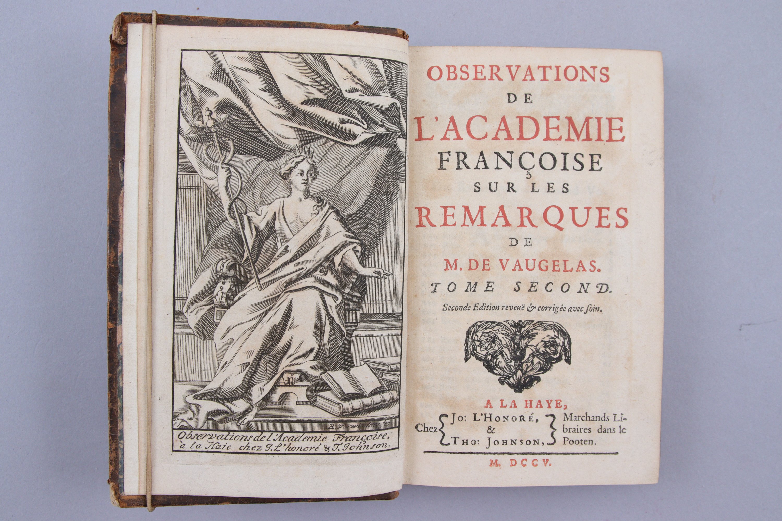 Observations de l'Académie Françoise sur les remarques de M. De Vaugelas. Tome Premier (tome second). Seconde édition reveue et corrigée avec soin..