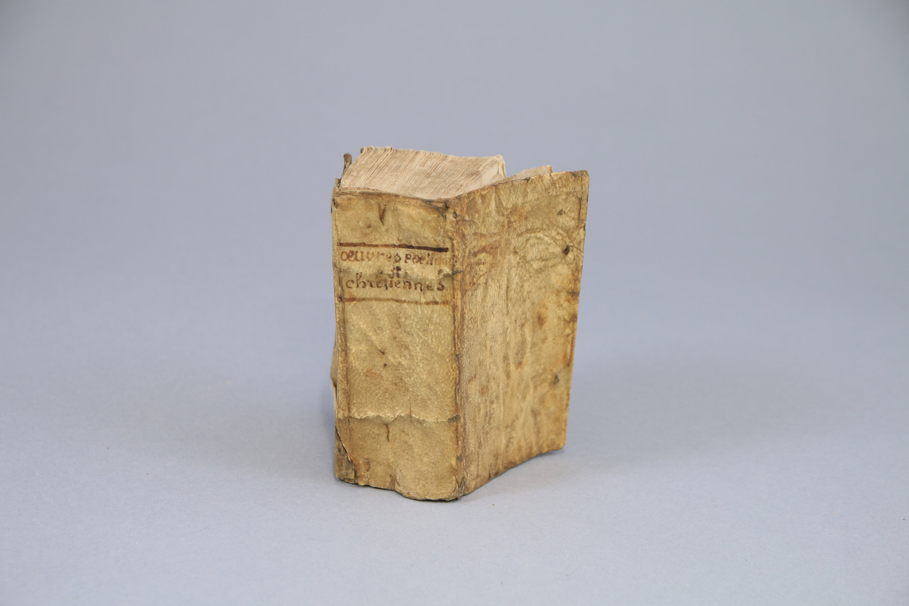 In-32, 393 feuillets et (2 ff). Vélin souple du temps. (Reliure manipulée. Petit manque dans la marge supérieure du titre.).