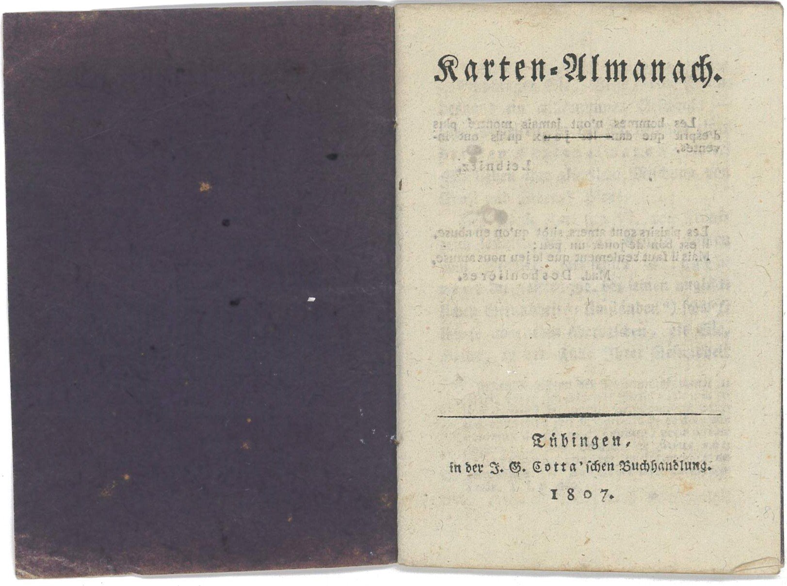 Johann Friedrich Cotta, est à la tête vers 1804 de la maison d'édition J.G. Cotta (son grand-père) de Tobingen en Allemagne. J. F. Cotta a continué de produire une série de six almanachs de cartes à jouer dans les années successives de 1805-1811, avec un nouveau jeu apparaissant dans toutes ces années sauf en 1808.