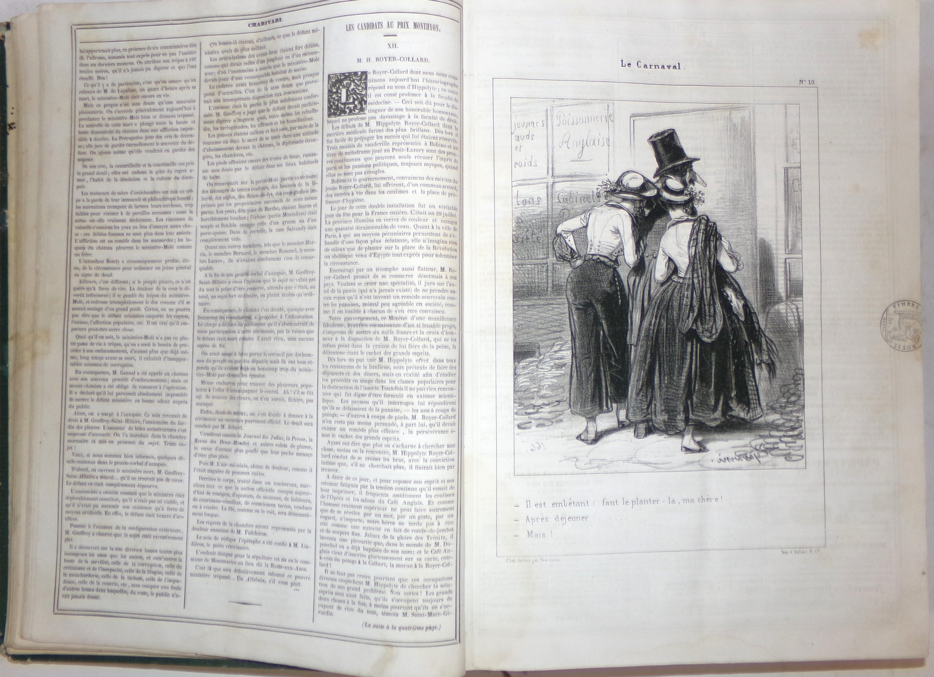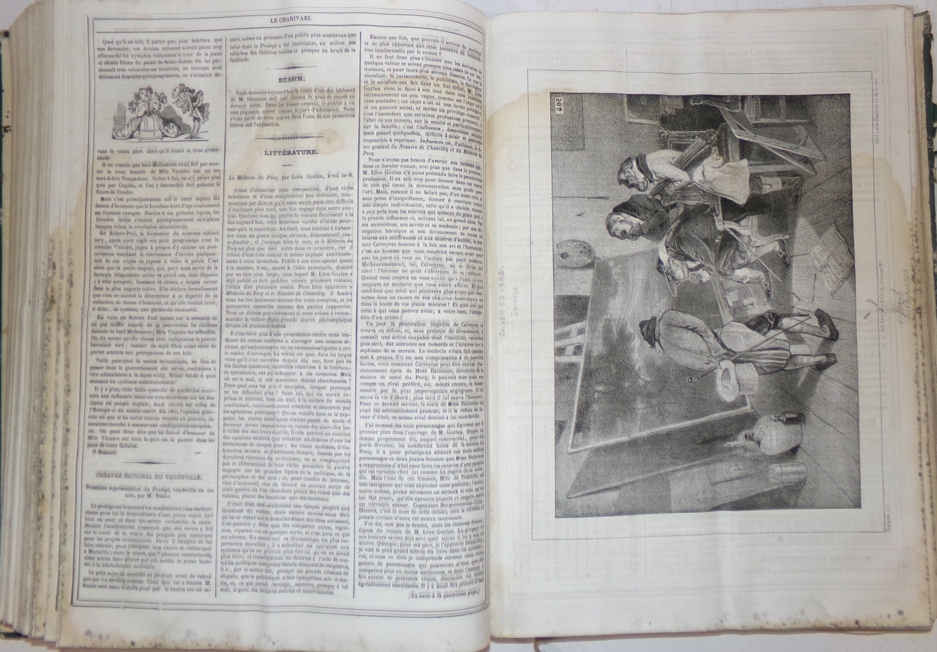 Premier quotidien illustré satirique du monde, Le Charivari parut de 1832 à 1937. Fondé le 1er décembre 1832 par Charles Philipon comme un journal d'opposition républicaine à la monarchie de Juillet, le journal satirique à vocation distractive s'affirma au cours de son histoire tantôt radical, conservateur, républicain ou encore anticlérical. Ses auteurs les plus notables furent notamment Taxile Delord ou encore Agénor Altaroche et ses caricaturistes les plus marquants furent entre autres Philipon, Nadar, Gustave Doré, Honoré Daumier, Cham, Gavarni, Pigal, Traviès, etc.