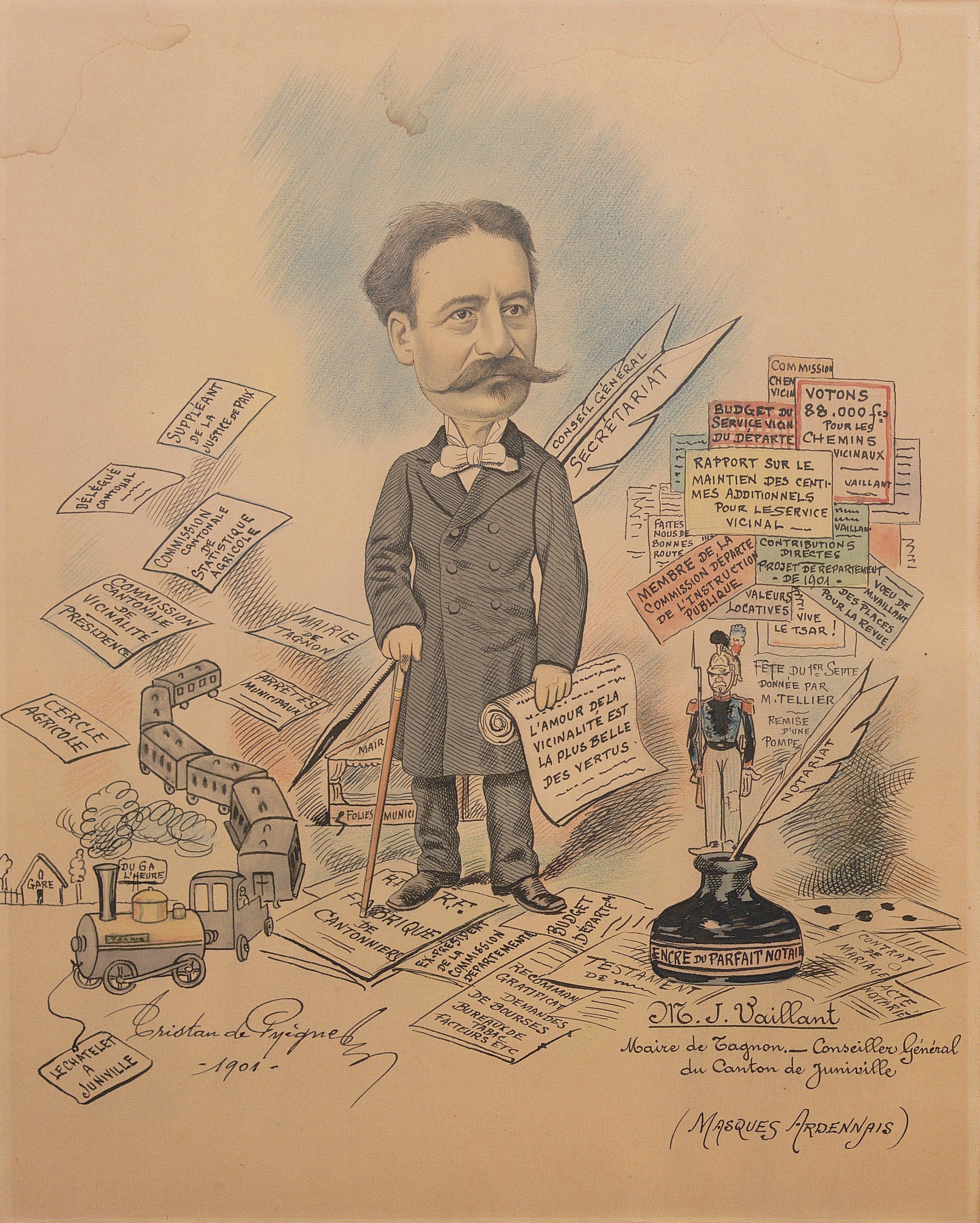 Tristan de Pyègne, alias Charles Bosseux, fonde en 1897 à Charleville-Mézières le premier journal humoristique du département : « La Vie ardennaise illustrée ». Hebdomadaire, bimensuel puis mensuel, ce journal artistique et littéraire cessera de paraître en janvier 1903. Rédacteur et illustrateur, de Pyègne y publie des articles illustrés de portraits et de caricatures d’hommes politiques et notables de la région. En parallèle, il lance en 1901 La Vie Lorraine illustrée à Nancy.