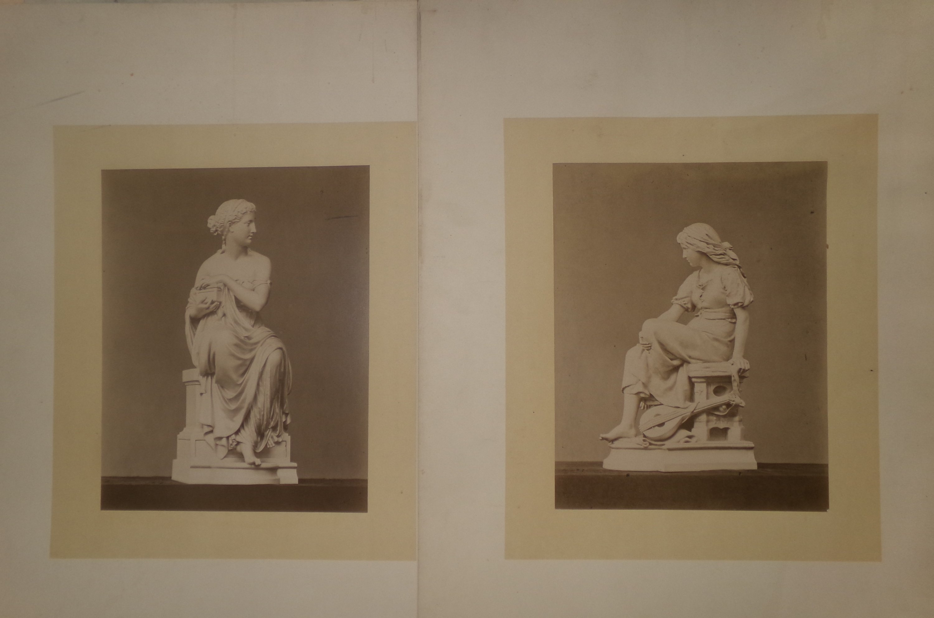 3 vues de statues en marbre sculptées par Eugène-Antoine Aizelin dont « Marguerite » et « Mignon », contrecollées sur carton fort, 26,5 x 20 cm ;