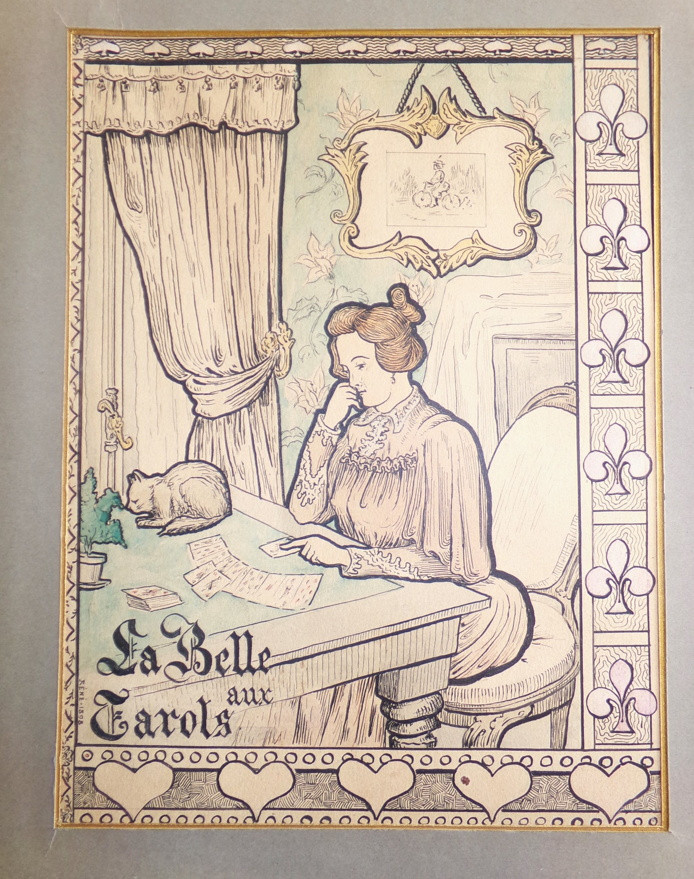 La Belle aux tarots, encre et aquarelle, signée et datée « Réné 1898 », 26 x 20 cm.