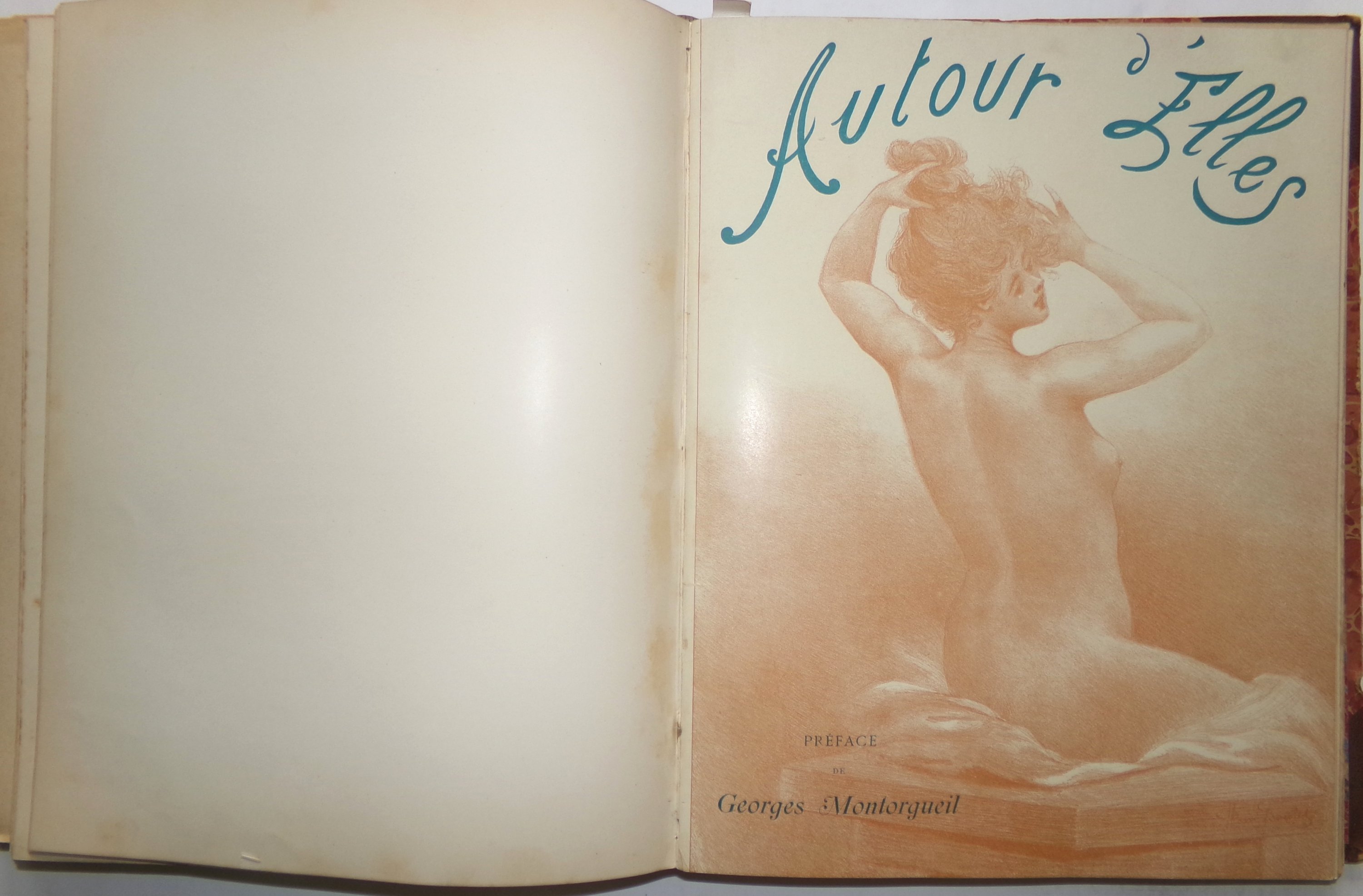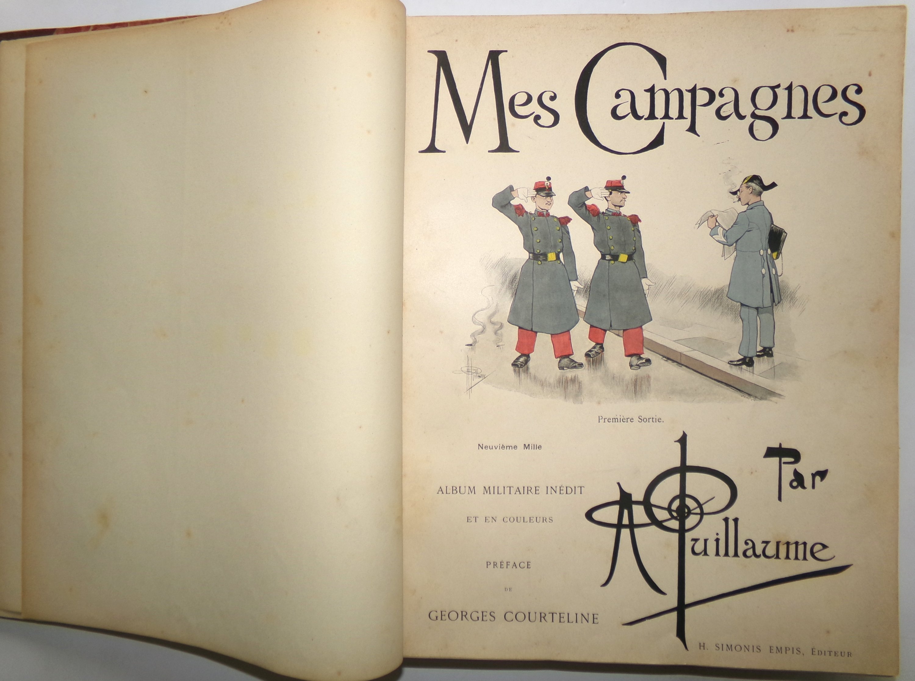 Recueil factice en 1 vol. rel. grand in-4 contenant 8 albums édités par H. Simonis Empis à Paris : Mes Campagnes ill. par Albert Guillaume ; Etoiles de Mer ill. par A. Guillaume ; Femmes de Théâtre ill. par Ferdinand Bac ; Nos femmes ill. par F. Bac ; Les Alcôves ill. par F. Bac ; Autour d’Elles Le Lever I ill. par Henri Boutet ; Autour d’Elles Les modèles II ill. par H. Boutet ; Autour d’Elles Le coucher III ill. par H. Boutet.