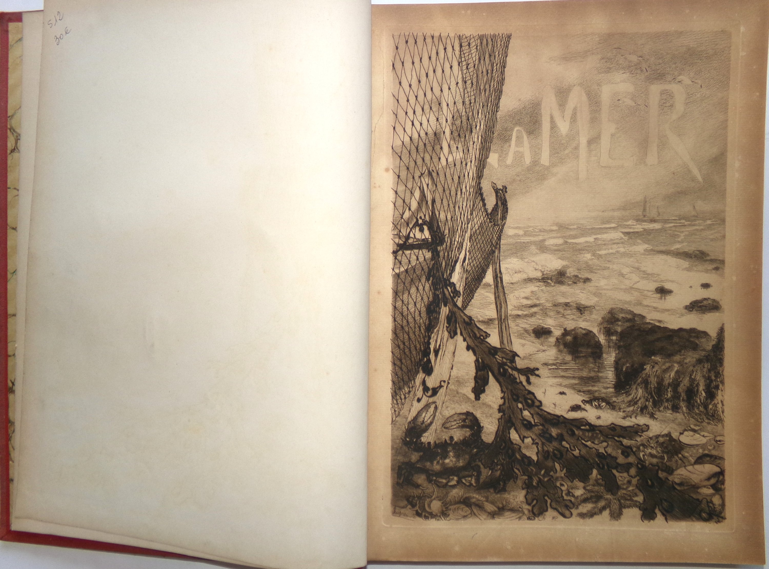 Joint : René Maizeroy, La Mer. Paris, Georges Petit, [c. 1895]. Grand in-4 re. ½ chagrin. Couv. ill. eau-forte originale de Bracquemond, de 6 héliogravures hors texte d'après Louise Abbema et gravures d'après Félix Ziem, Montenard, Meissonnier, Courbet, Abbena, Maurice Courant, Daubigny, Isabey, Monet, Millet, Duez, Dupare, Vernier, Corot, etc. Incomplet (mque 3 eaux fortes de Bracquemond) (rousseurs)