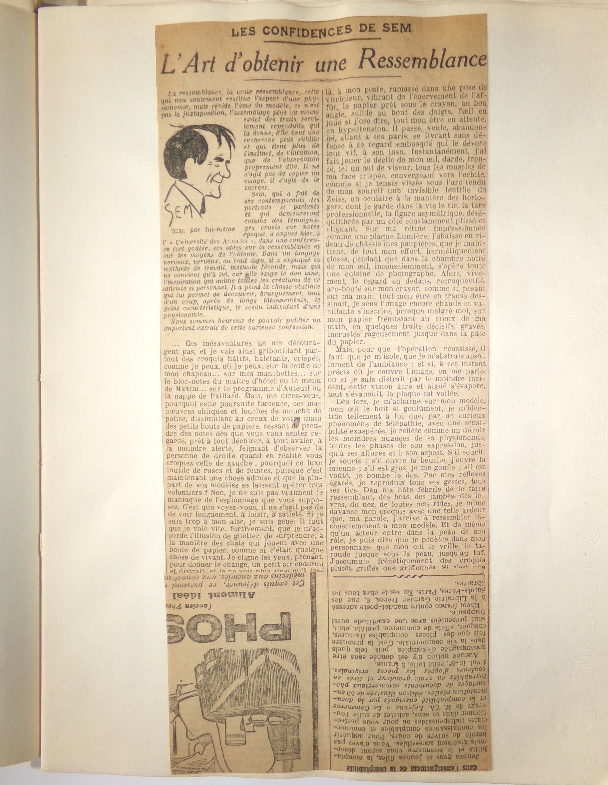 Recueil factice de coupures de presse, illustrations croquées par Sem et parues dans la presse.