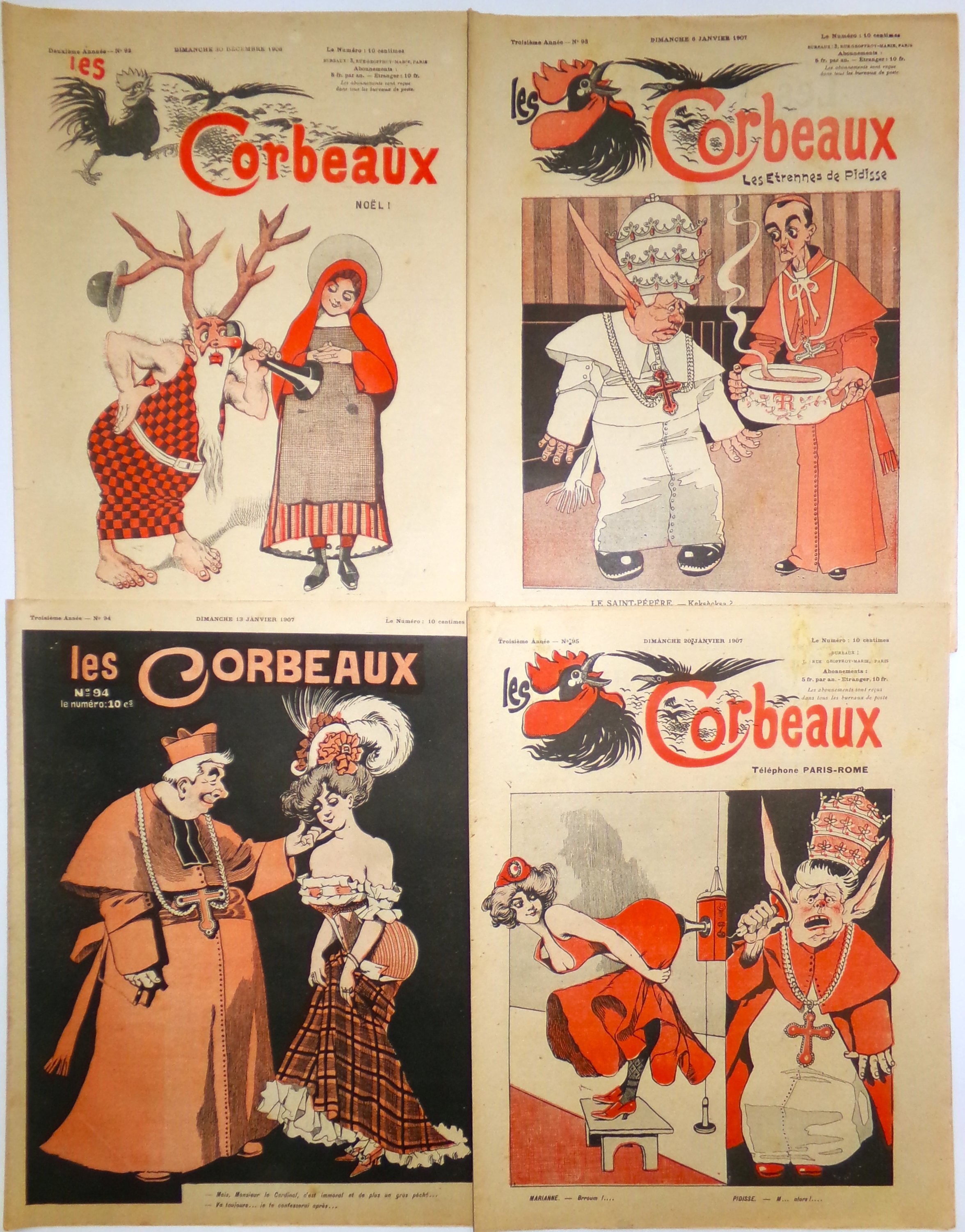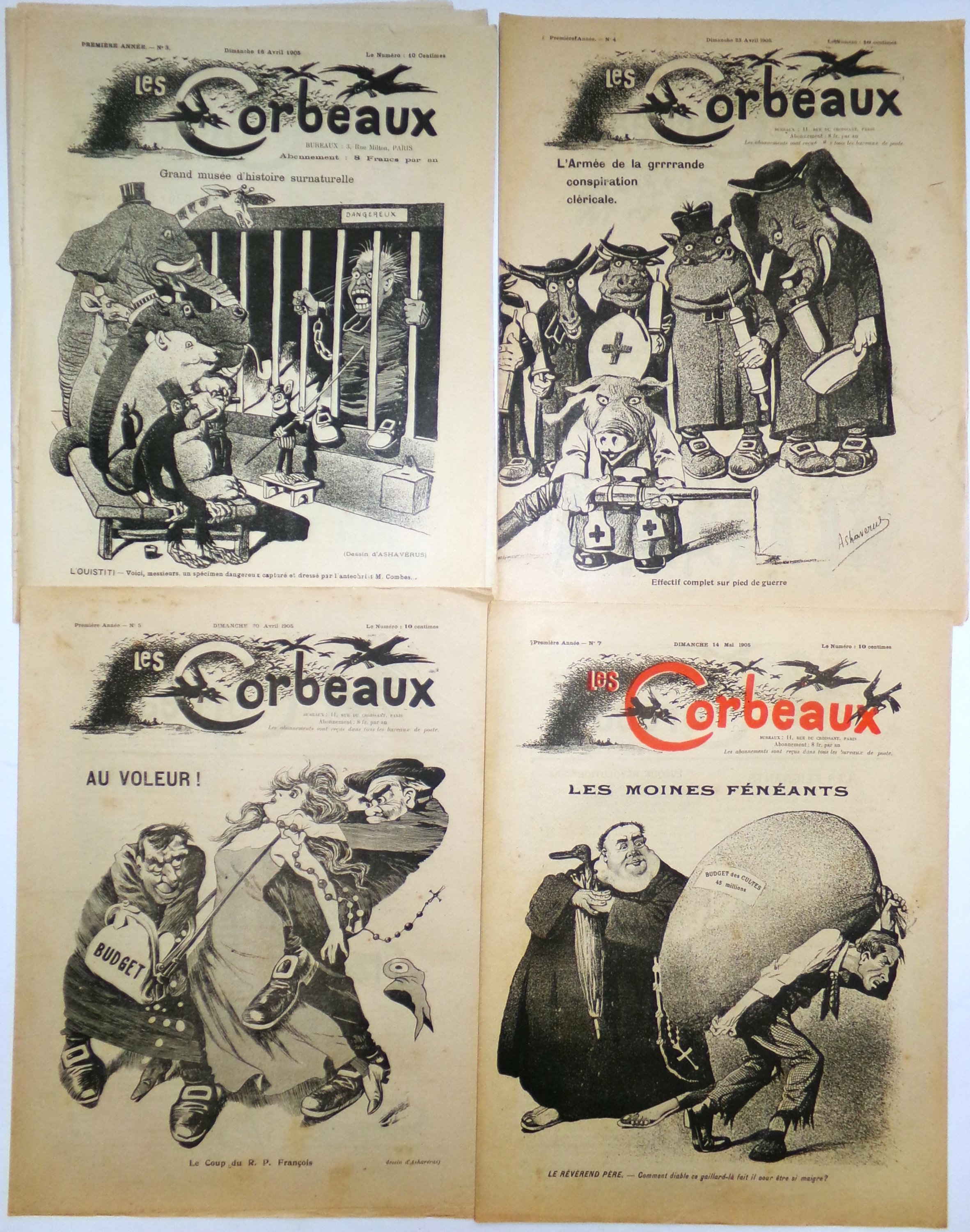 LES CORBEAUX, REVUE SATIRIQUE ANTICLERICAL, PARAISSANT CHAQUE DIMANCHE, 1905-1908